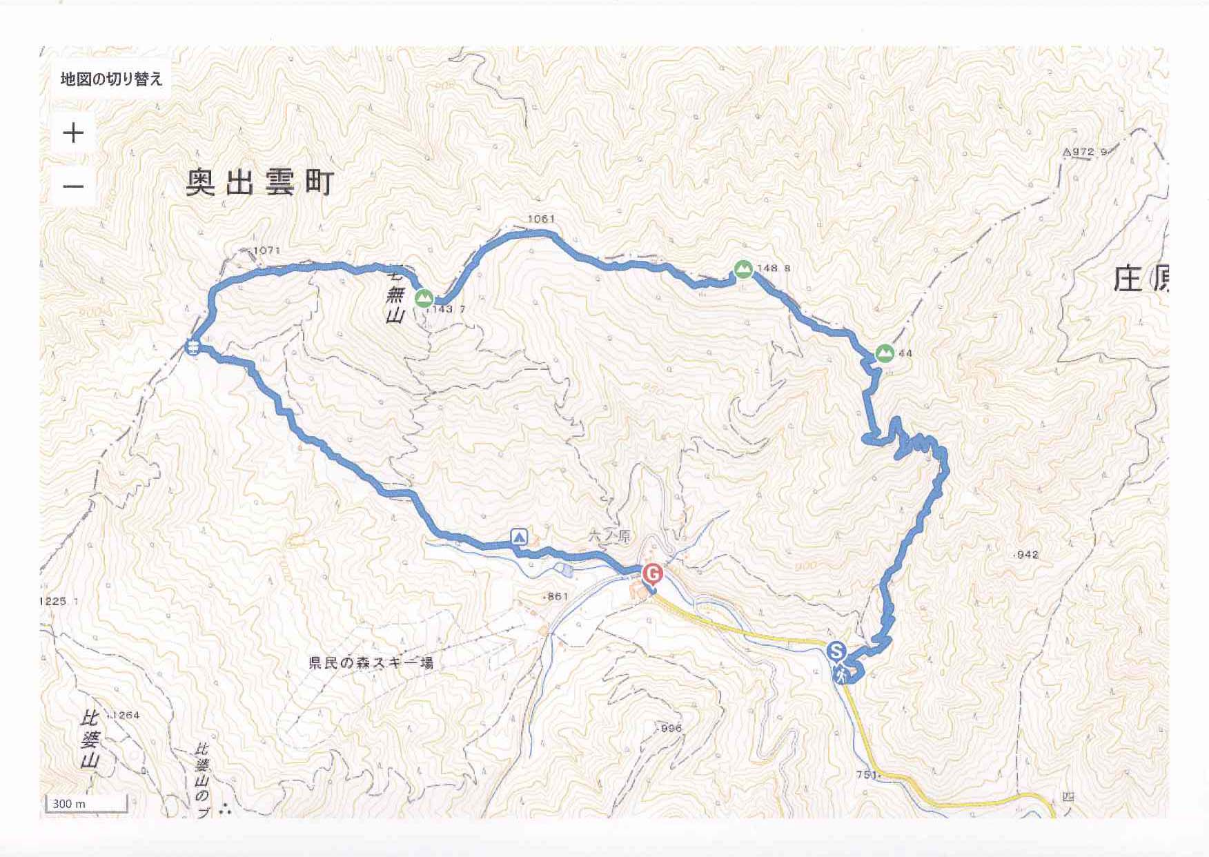 県庁前7:30⇒10:10牛曳山登山口10:25→11:35牛曳山山頂11:55→12:00分岐で昼食12:40→12:50伊良谷山山頂12:55→13:30毛無山山頂14:00→14:30出雲峠14:30→15:15県民の森15:35⇒18:15広島駅