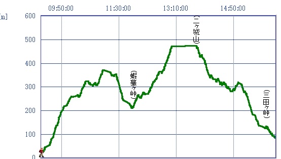 戸坂駅9:15→松笠観音寺10:15→松笠山山頂11:05→菰口憩いの森11:45→がまケ峠(ニヶ城山登山口)11:50→13:05?13:45ニヶ城山山頂(昼食)→三田ケ峠15:40→大平バス停16:10