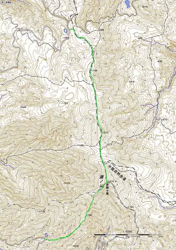 扇ノ山は姫路公園コースを上る。いきなり沢を何度もわたり返したり岩もあったりと、楽しい道。まもなく尾根へ取付き急な登りとなった。しかし道はしっかりしていて、ゆっくり歩いたので楽に登れた。途中、檜蔵という四角い岩のある所では素晴らしい紅葉の展望が見られた。扇ノ山山頂の避難小屋はきれいでここで泊まってみたいような気になる。下山は河合谷コース。山頂からすぐのところに展望所が設けてあって鳥取市、日本海がよく見えた。白い波が打ち寄せていたのは砂丘から白兎海岸にかけてであろうか。ここからの下りが雨の後のせいかぬかるんでいて歩きにくかった。しかし1273mピークを過ぎたあたりからのなだらかな稜線は立派なブナの木の林が続く。白い太い幹がどこまでも林立している景色には驚かされた。