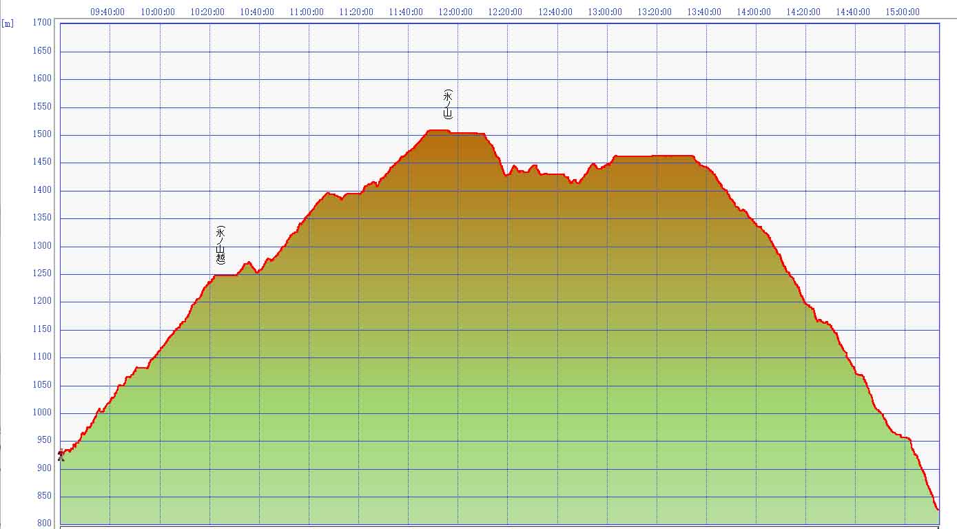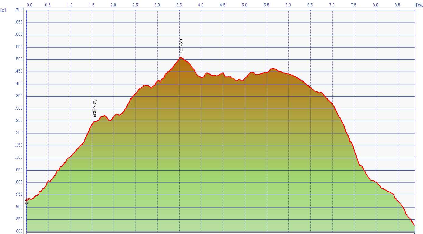 旅館さんきん7:56⇒(コンビニ)⇒9:07キャンプ場(登山口)9:20→10:23氷ノ越10:30→11:15仙谷分岐11:20→11:50氷ノ山山頂・トイレ12:10→13:04三の丸山頂(昼休憩)13:34→14:22チャレンジリフト終点→15:13登山口⇒15:17トイレ15:35⇒16:15道の駅・河原IC16:40⇒津山IC⇒広島IC⇒20:15中筋駅⇒20:40広島駅