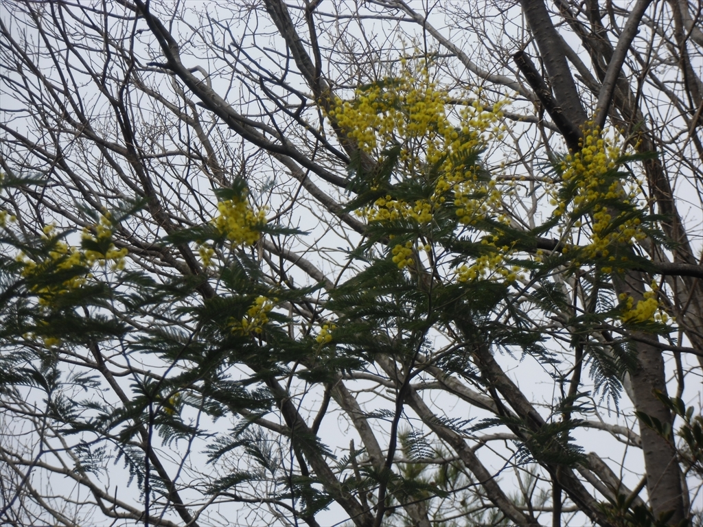 春の兆しを感じつつゆっくりペースで歩みを進め、少々冷たい風も汗ばんだ肌に心地よく、左右に見え隠れする早春の海を見やり、思いがけず咲き始めのミモザに出会え「おお〜!」と歓声をあげました。