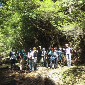 6時起床、昨夜に続きコッフェルで炊いたご飯が美味しい。お米は「こしひかり」佐々木さんのお父様が作られた米だ。その後、赤ナメラ沢入口へ移動して沢歩きとなった。靴の不具合で1名引き返されたり、途中アクシデントもあったが、木々に陽ざしは遮られ、冷たいと感じた水も最初だけで沢を歩いたり巻いたり水と親しんだり楽しみながら進んだ。恒例の昼食のソーメンをいただき、赤ナメラ沢入口まで戻った。
