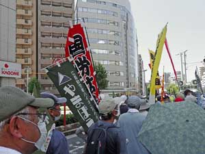 感染防止のため、シュプレヒコールの代わりにハリセンで核のない平和を訴えながらの行進となった。