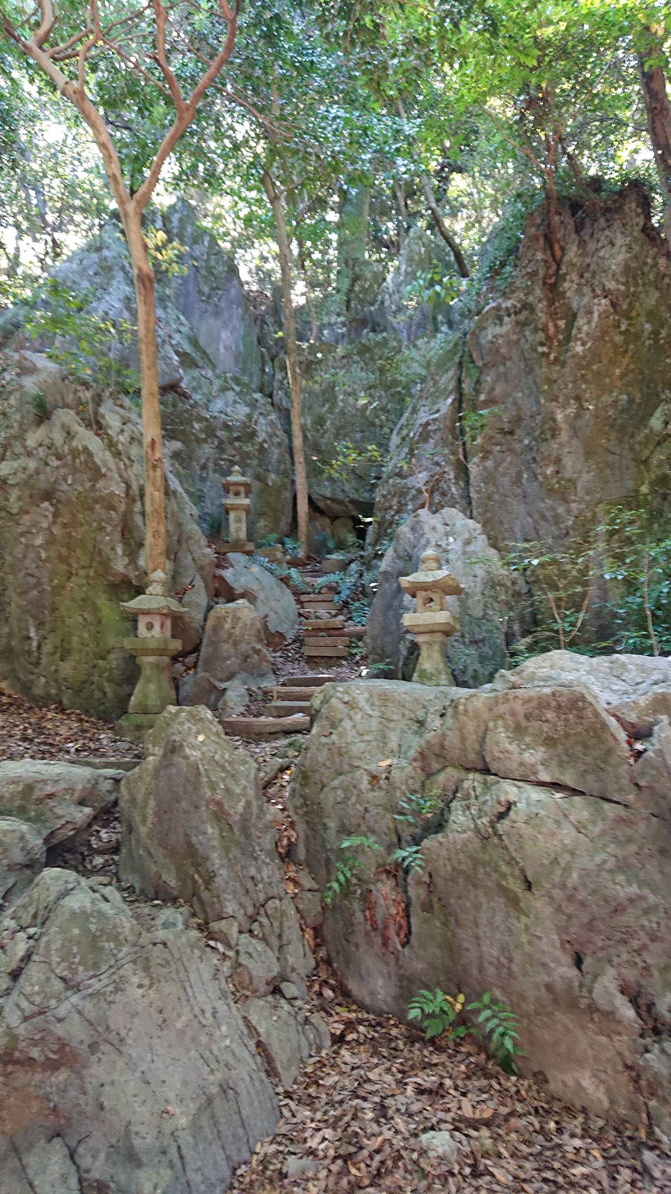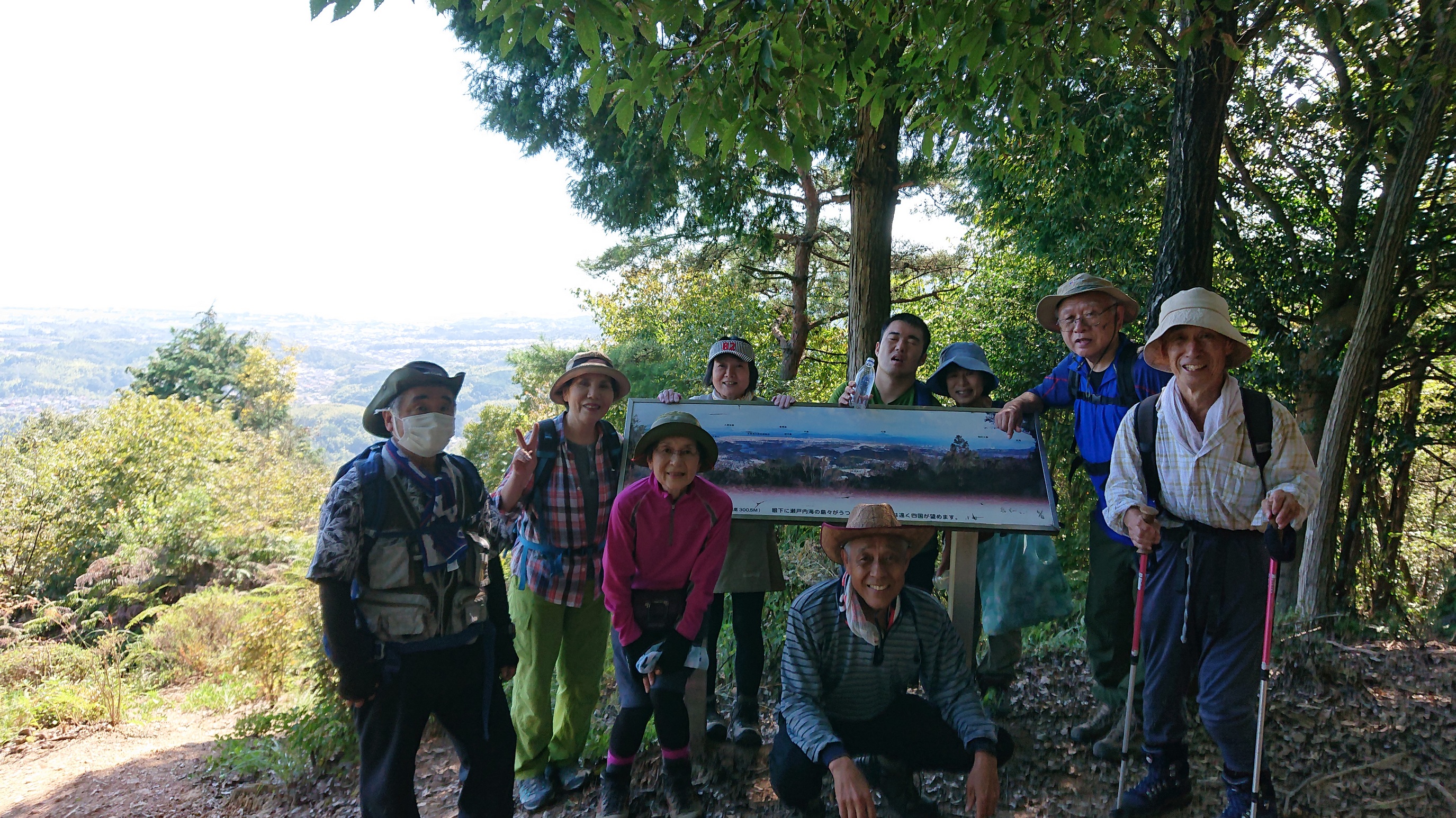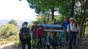 展望所では風が吹きぬける日陰になっていて、眼下に広がる岩国の街の景色を楽しむには丁度よかったです。しばらく休憩をとり、三角点まで行った後、昼食場所であるロープウェイ広場までは、なだらかな遊歩道の山道を30分位歩きました。昼食休憩後、スカイブルーの空と岩国城の天守閣をバックに、写真を撮り下山しました。