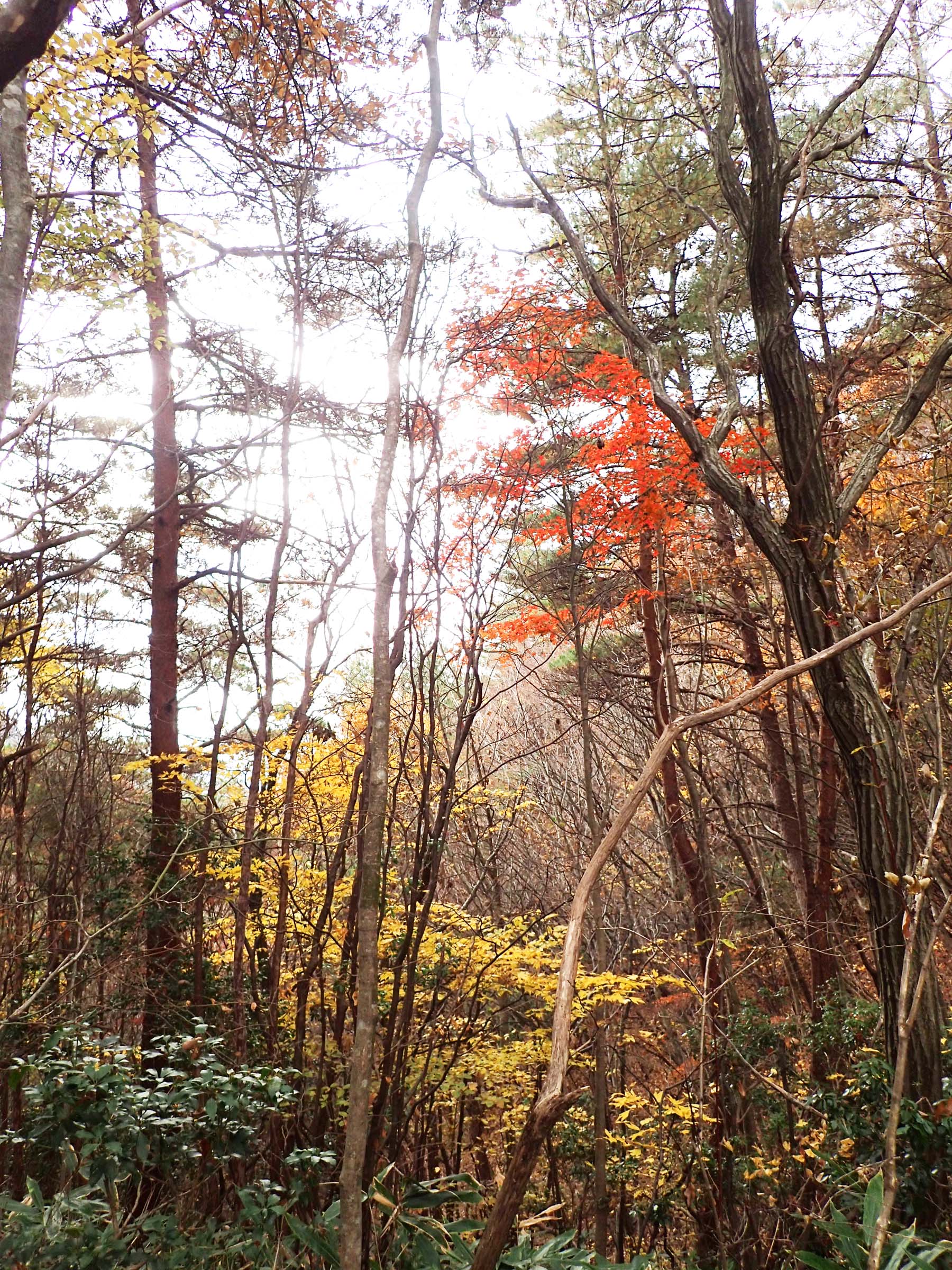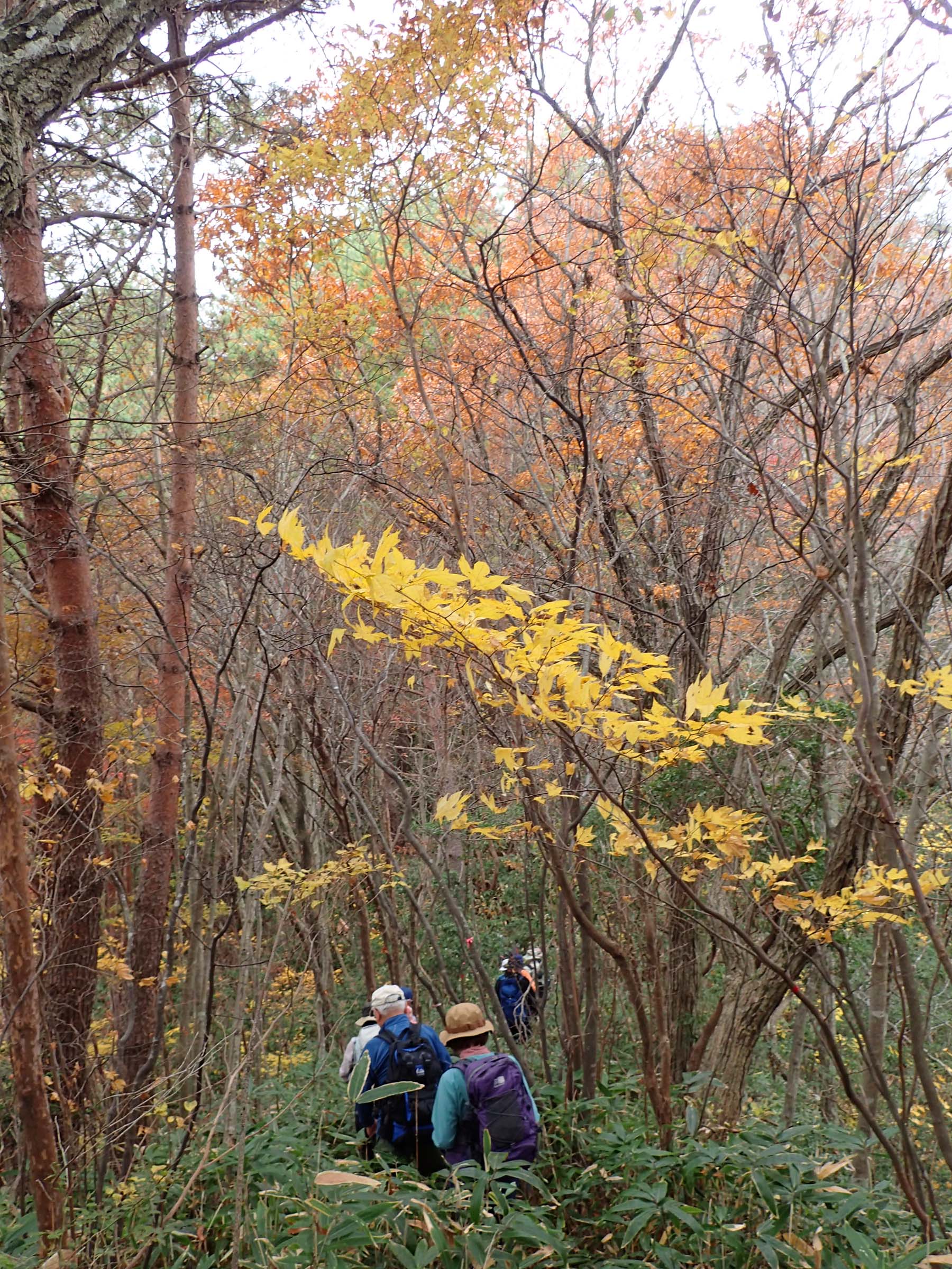 安全のためロープは用意していたのだが、特に慎重に行動する、前後の方が足場などの指示、注意、サポートするなどお願いして難所を切り抜けることが出来た。歩数一万歩に満たない山行とはとても思えない。下見の時には二人だったので難所の通過にそれほど時間がかからなかったし、落ち葉に悩まされることもなかったので軽く考えていたようだ。おまけに道を間違えるなど皆さんにご迷惑をかけました。