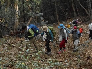 下山は展望の無い展望岩を通り東西条小学校裏に下山しました。 3時間足らずの眺望の無い山でしたが、初めての山登りという人にとっては絶好の山道ではなかったかと思います。初冬の山行を楽しむことが出来ました。新型コロナウイルスに感染されないようにして下さい。