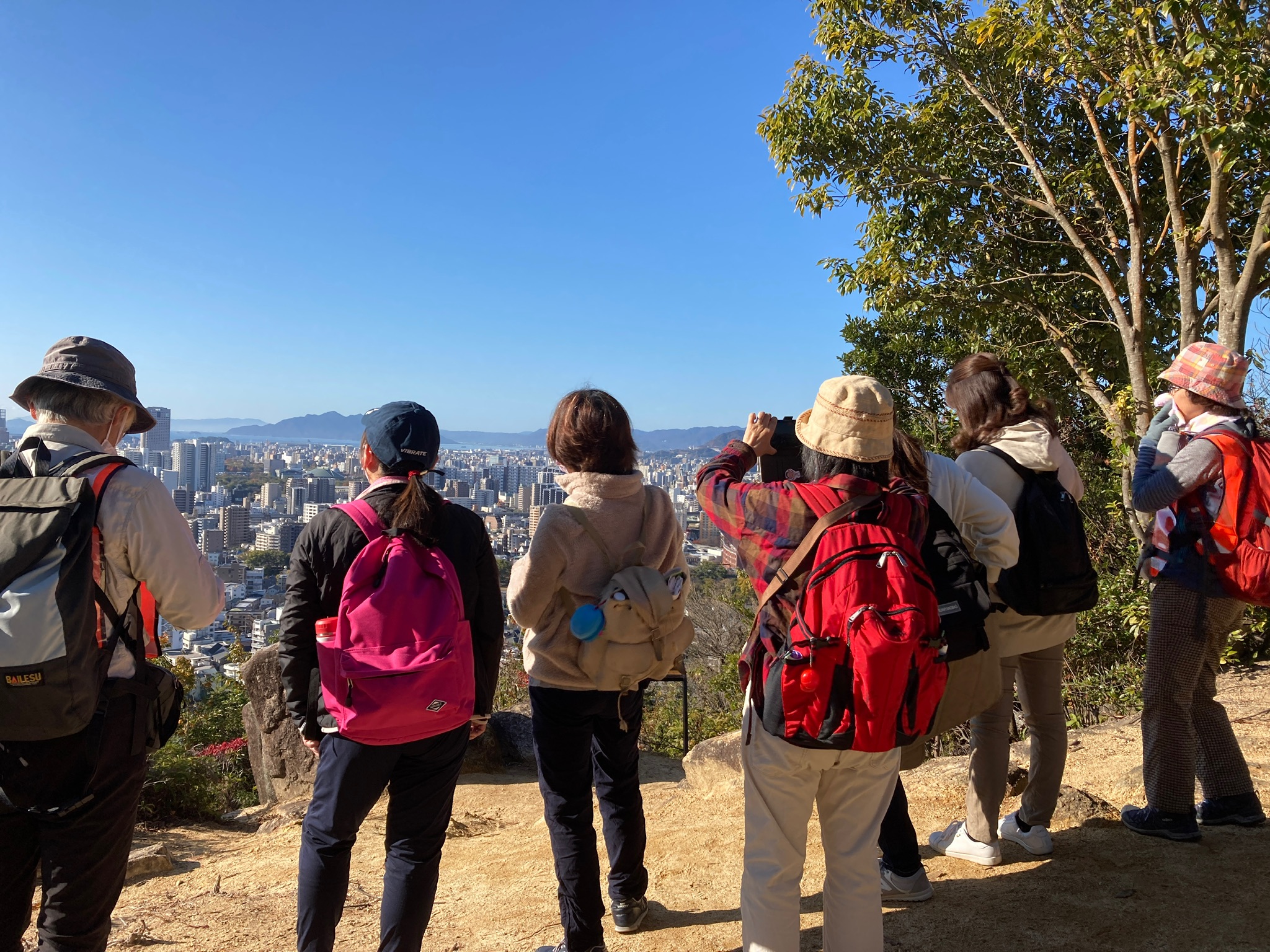 見立山、牛田山では学芸員の方からお話を伺ったり、山頂からの景色を見ながら、会話を楽しんだりして行事参加を通して交流する事ができました。