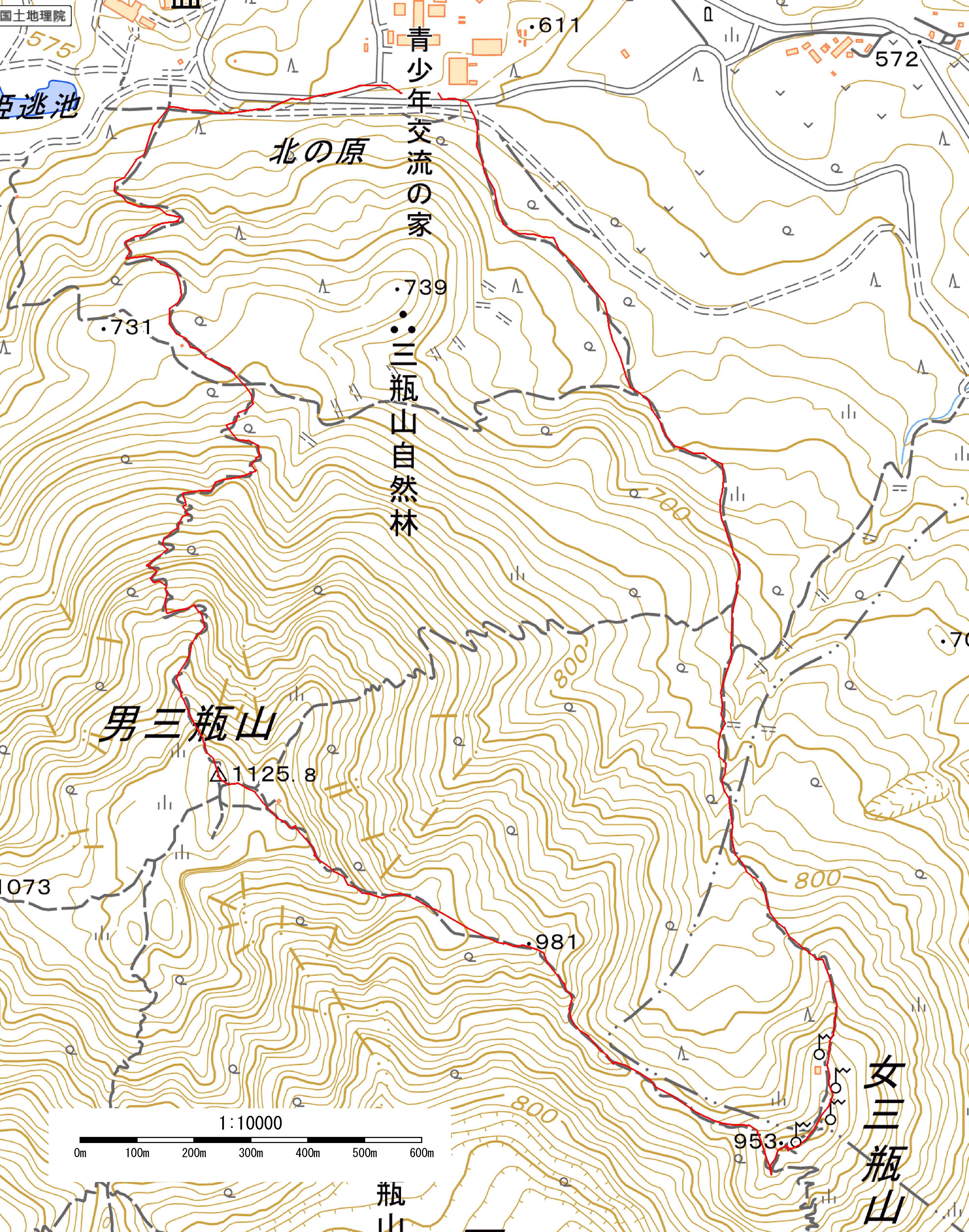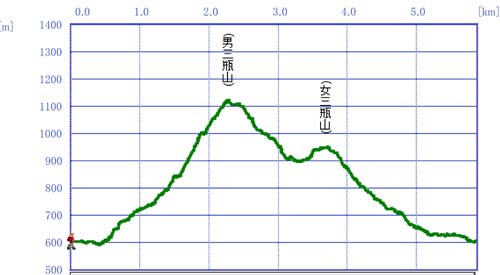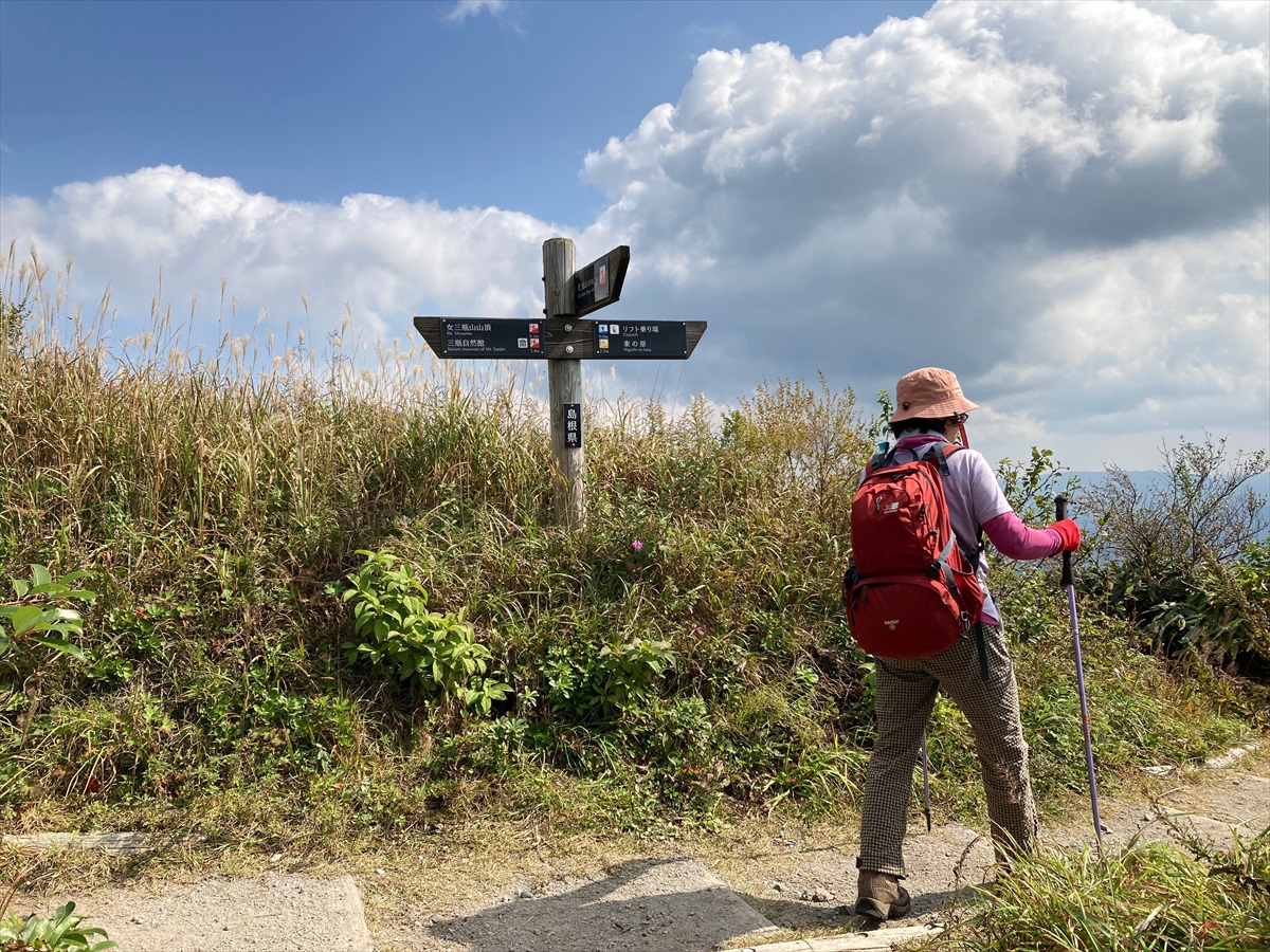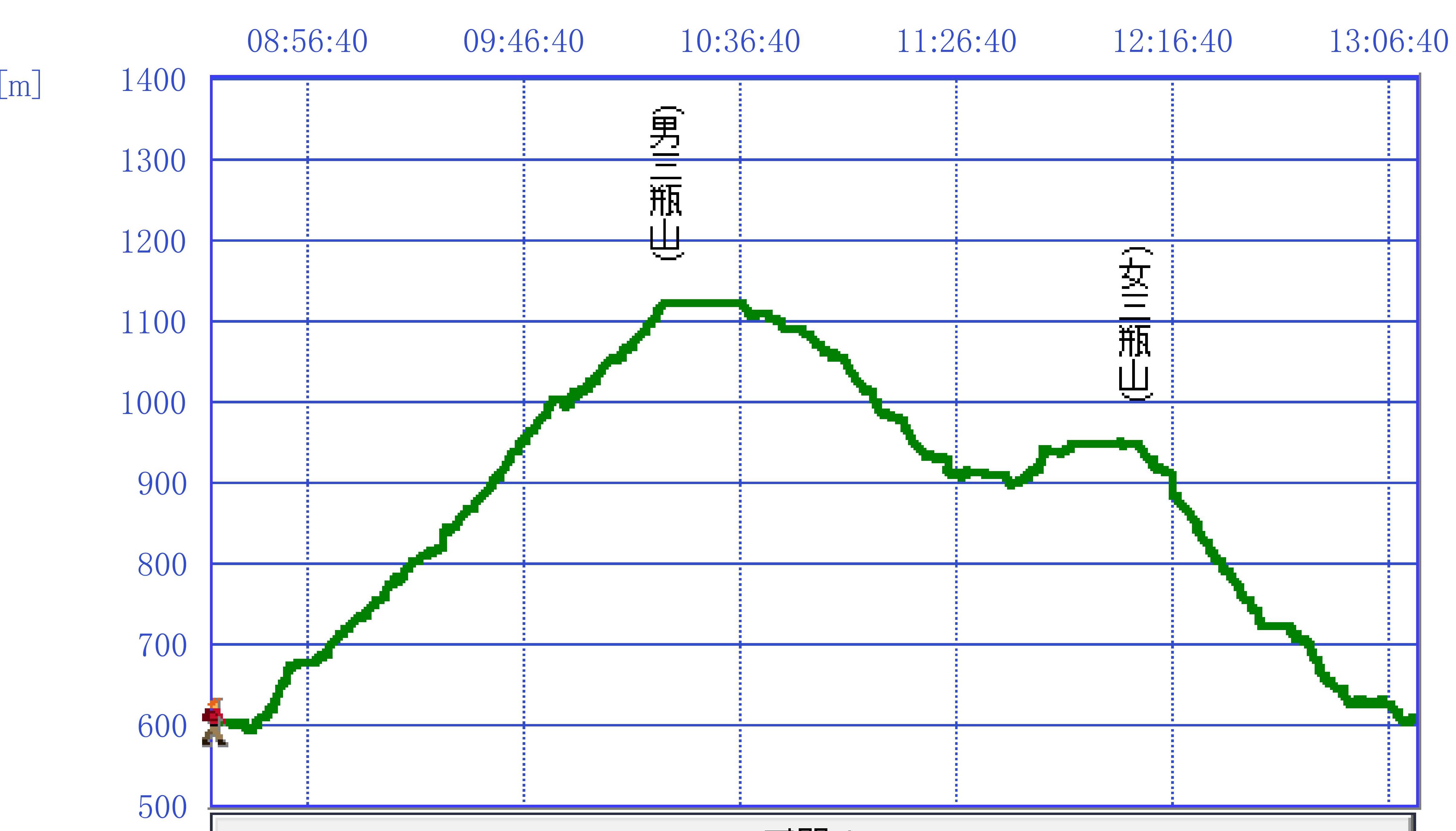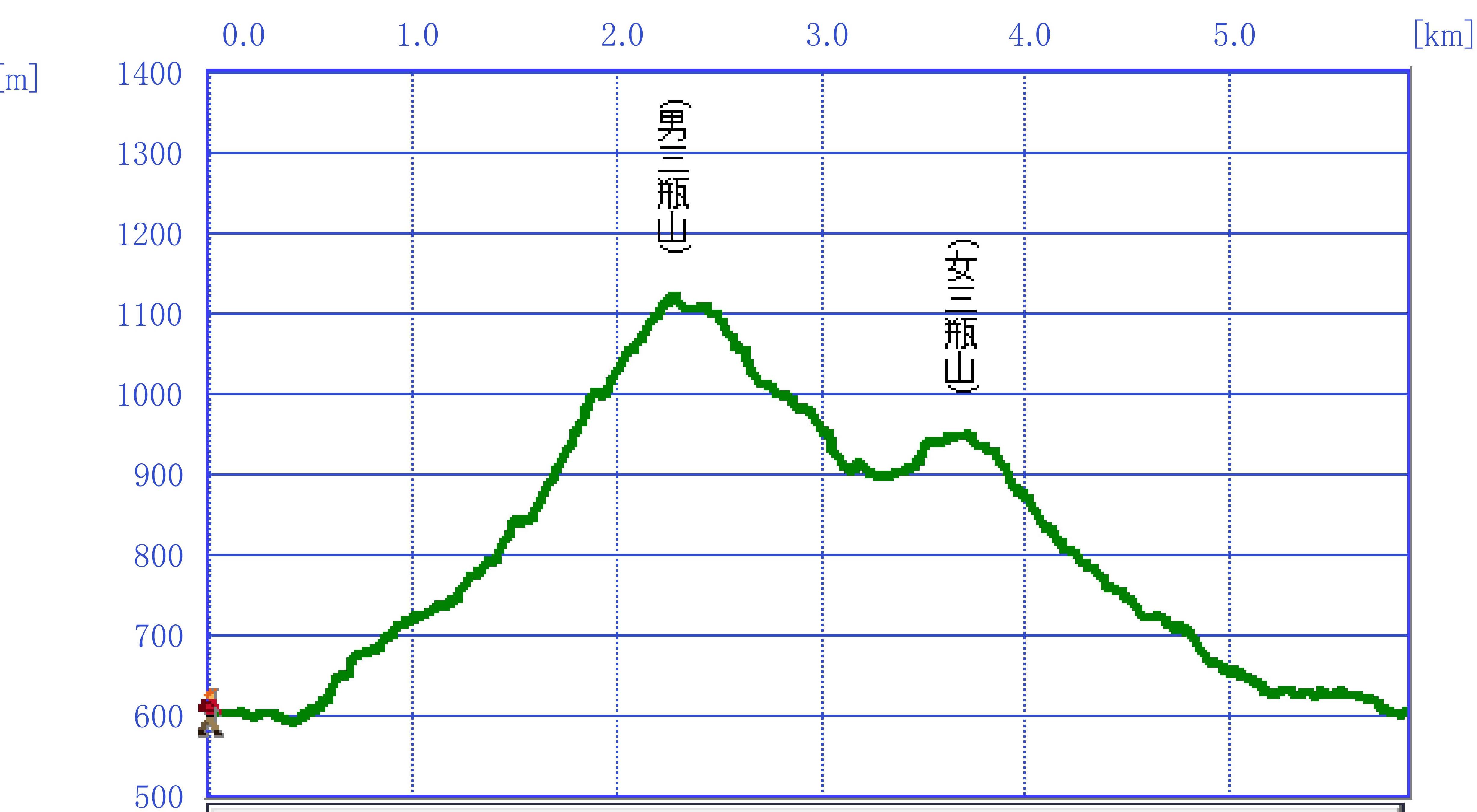 北の原(三瓶青少年交流の家)8:35→姫逃池登山口8:44→10:20男三瓶山頂10:37→11:49女三瓶山頂12:08→名号登山口13:10→13:12三瓶青少年交流の家(歩行距離:6.2km、累積標高差:665m、標準歩行時間:3時間45分、ルート定数:15)