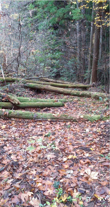 倒木がゴロゴロ、過去の台風で倒れたのか、そのままです。
