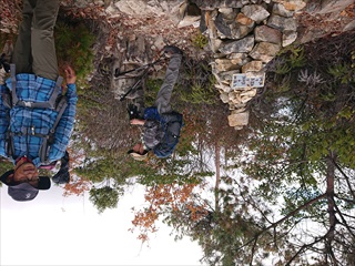 東屋での昼食はやはり12月、風が冷たく、じっとしていると身体が冷えてくるのを感じました。天地峠までは、黄色やオレンジの紅葉に彩られた絵下山を間近に見ながら歩き、時には急な山道を下り印象に残る山歩きができました。