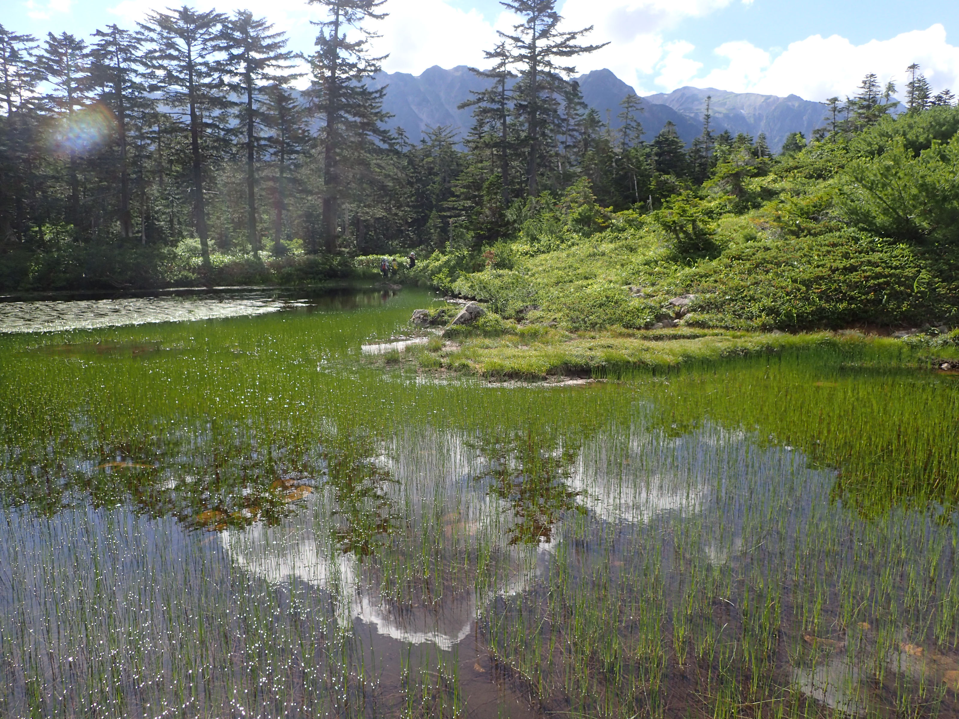 サブザックで温泉を通り越し、夢の平(竜晶池)に15:20到着した。そこは池に水があったのでホッとした。