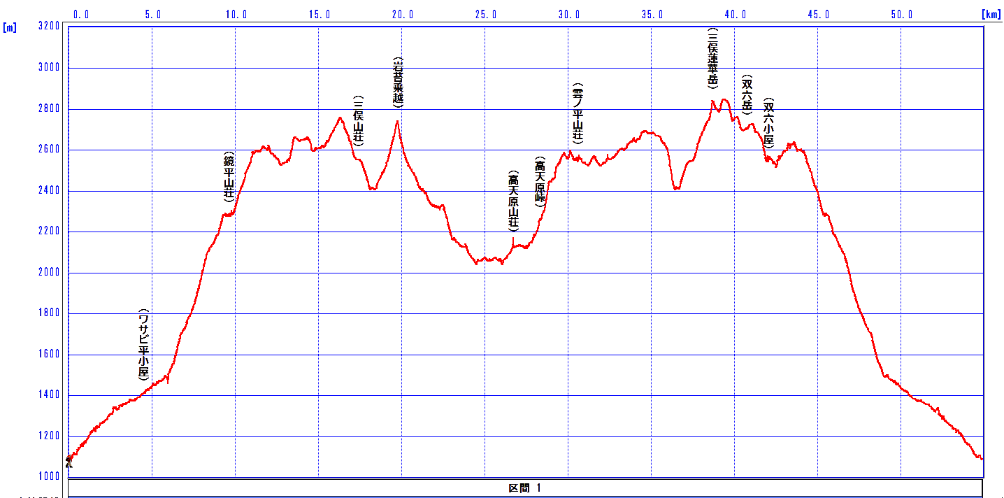 鏡平山荘6:10→7:40弓折乗越7:55→9:40双六小屋10:25→13:35三俣乗越13:40→14:20三俣山荘(泊)