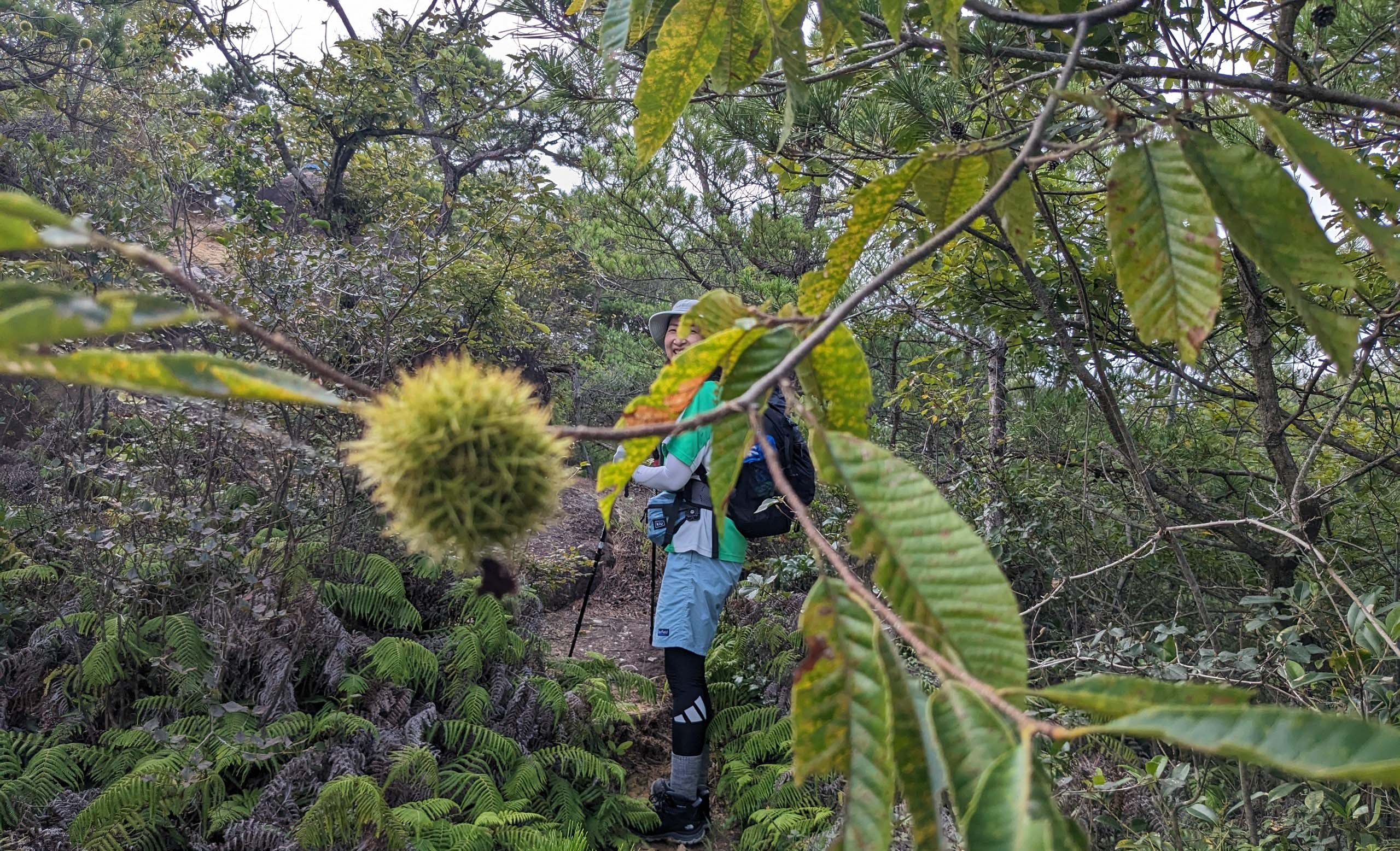 下見の時、登山口付近は夏草で覆われていたのですが、綺麗に刈られていました。8号峰までは傾斜のある登り坂を歩き、8から0号までの嶺を歩く山道は、遠くの山々の景色はあいにく少し霞んでいてはっきり見ることはできませんでしたが、時折秋風が吹き抜ける中、それほど暑さに悩まされず気持ちの良い歩きが出来ました。