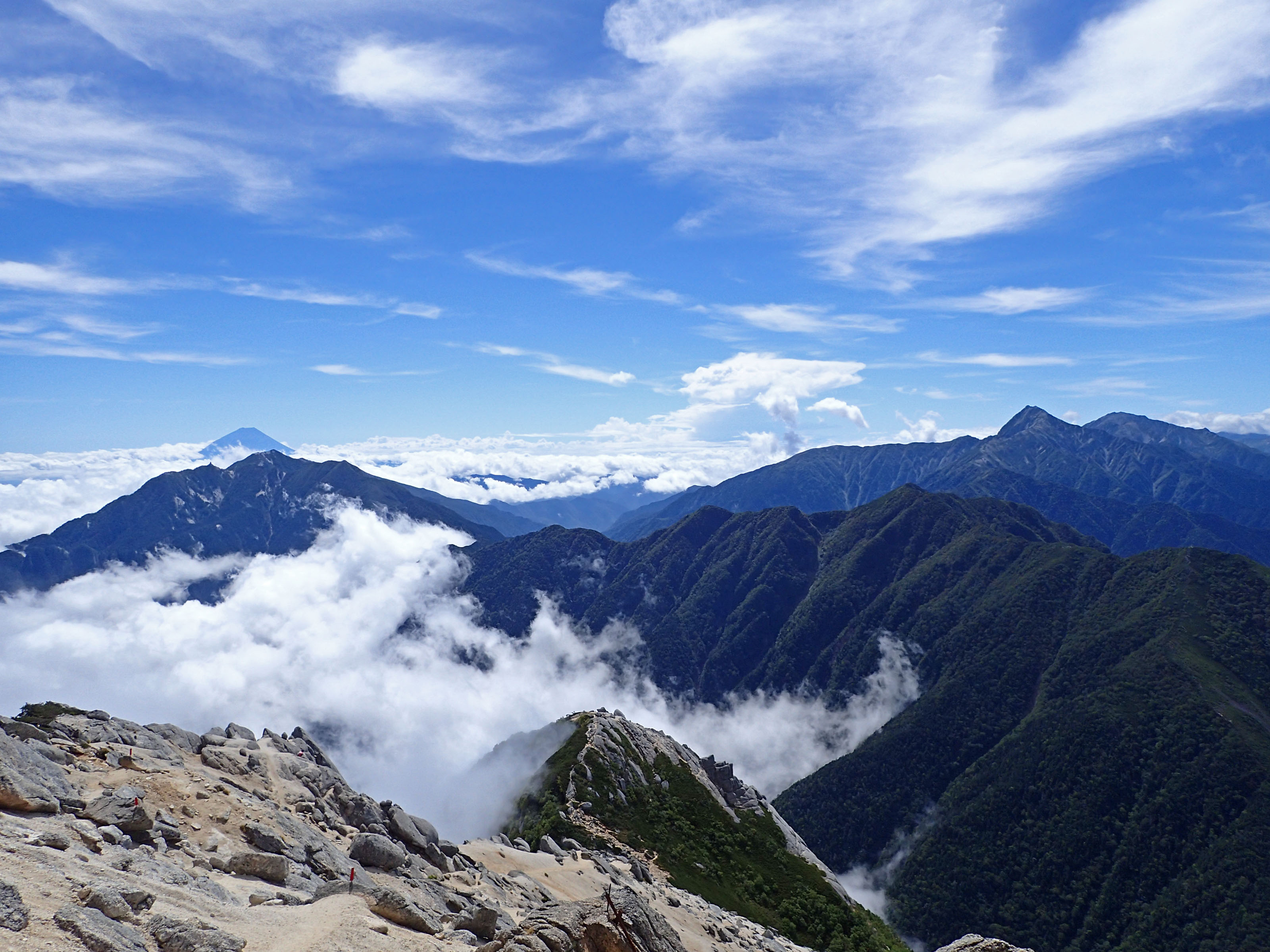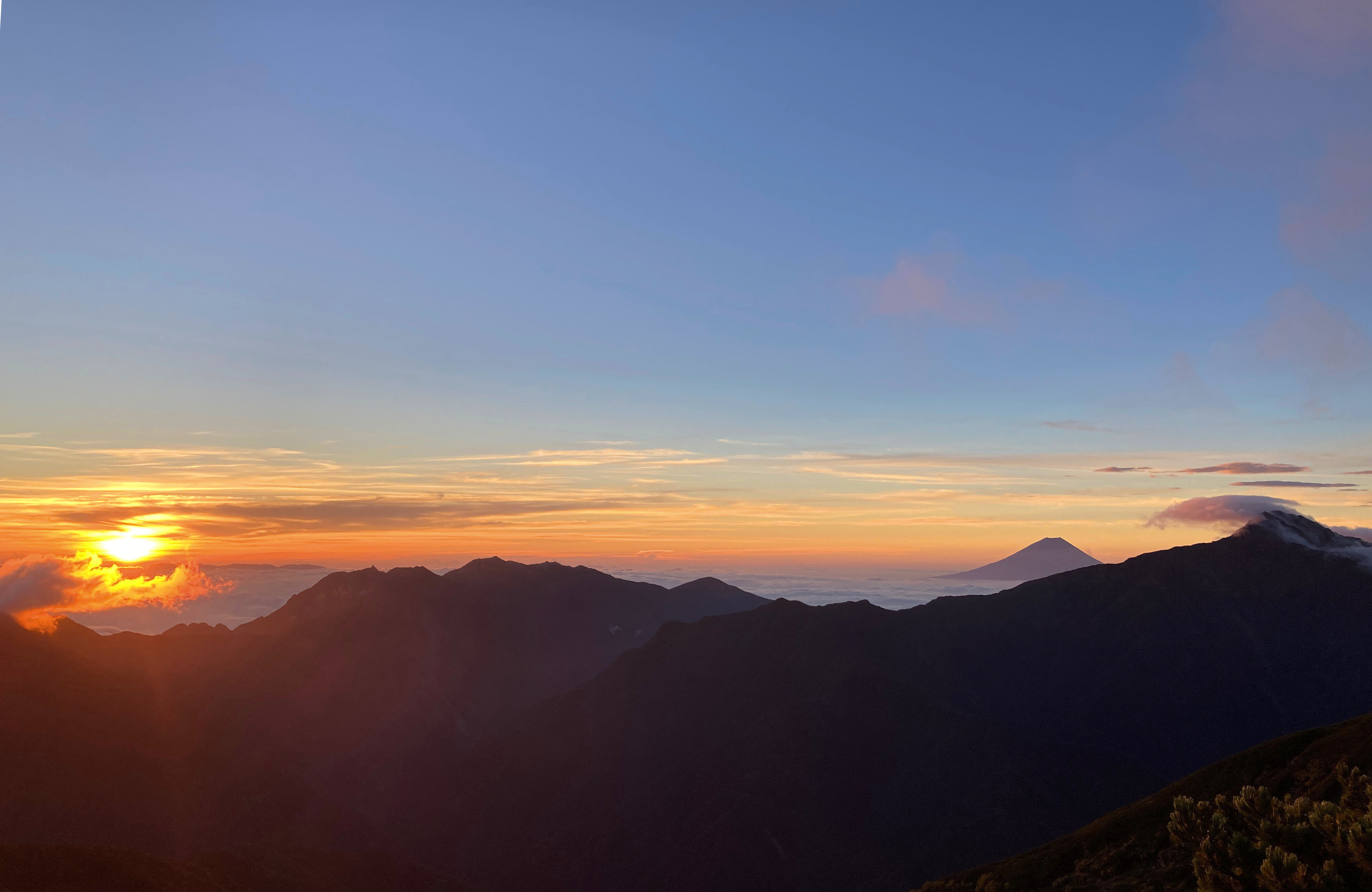 仙丈小屋4:20→5:00仙丈ヶ岳5:07→5:15ご来光5:25→5:30展望地5:35→6:24小仙丈ヶ岳6:33→7:20大滝の頭7:28→8:58北沢峠10:00⇒(林道バス)⇒15:15仙流荘13:30⇒(タクシー)⇒14:15伊那市15:01⇒(JR飯田線)⇒15:55岡谷16:49⇒(JR中央東線《遅延》)⇒16:59塩尻17:03→19:07名古屋19:26⇒(のぞみ)⇒21:46広島駅