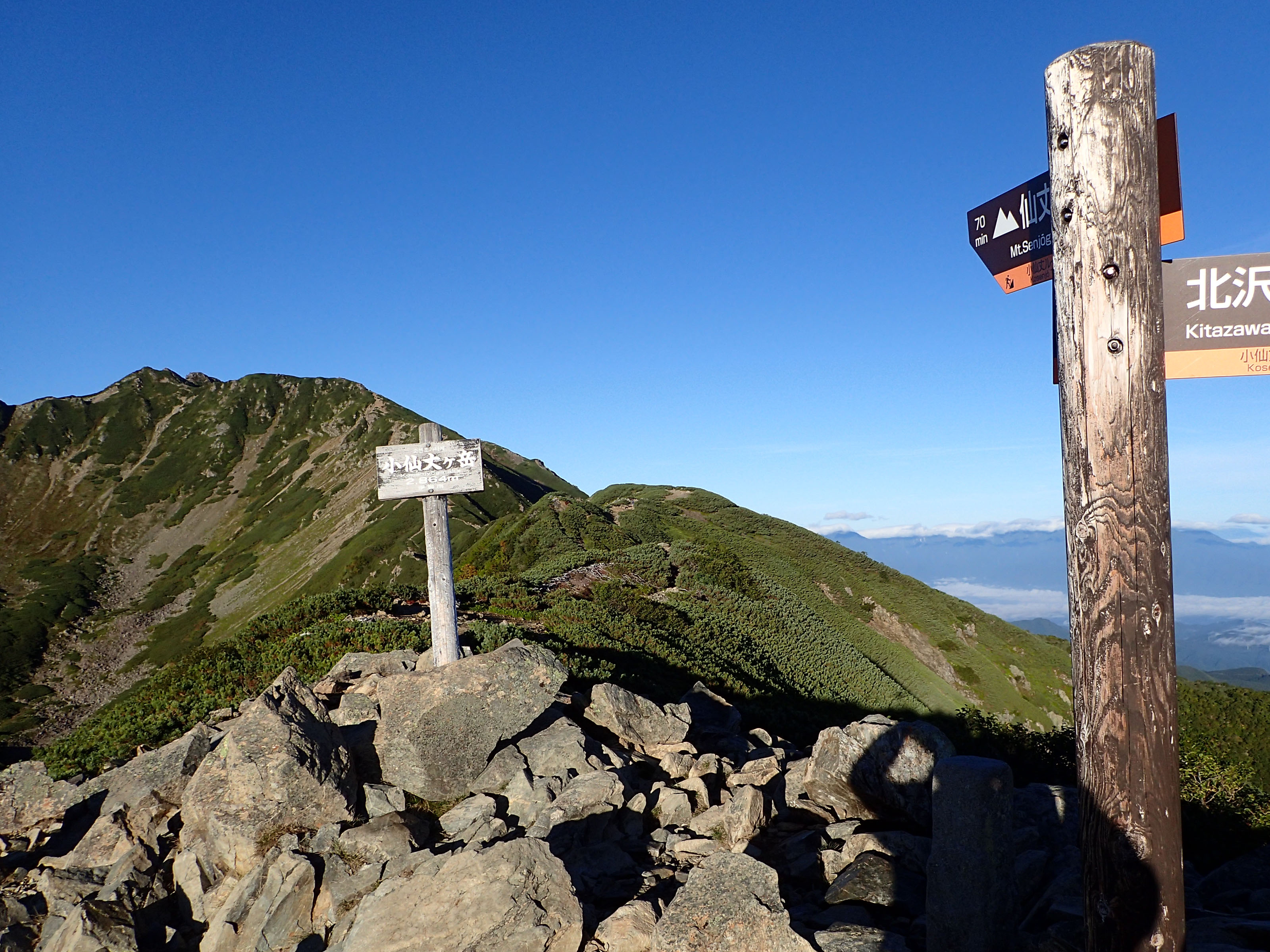 仙水小屋4:50→5:40仙水峠5:53→8:03駒津峰8:19→10:39甲斐駒ヶ岳11:30→13:15駒津峰13:30→14:25双児山14:35→16:35北沢峠こもれび山荘(泊)