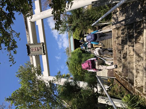 JR玖波駅9:05→9:15大歳神社→9:25石鎚神社、登山口9:40→10:10鎖場→10:50行者山山頂(昼食)11:40→11:55玖波槍→12:45傘山林道分岐→13:40見晴台分岐→13:55見晴台→14:20見晴台分岐→14:55西山神社→15:00メープルヒル病院→15:15JR玖波駅