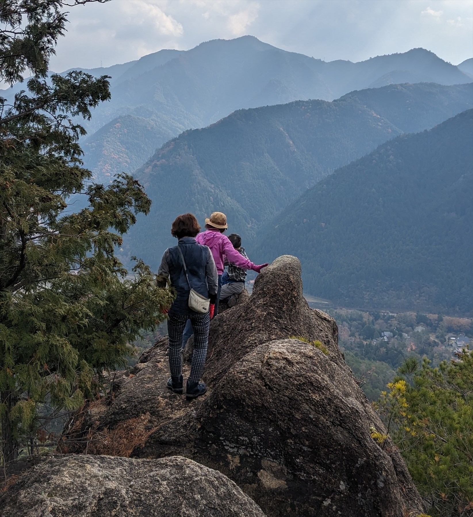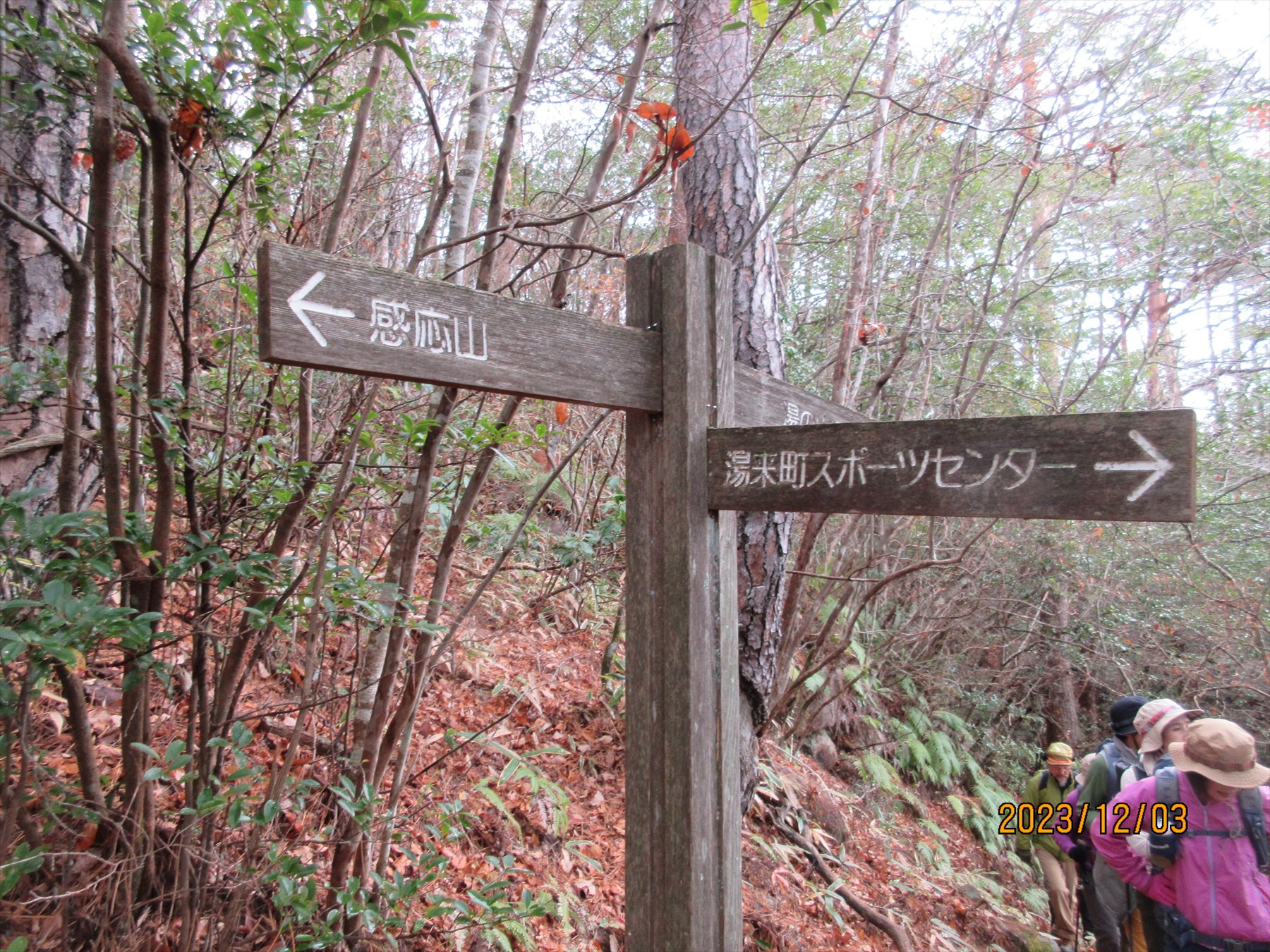 10:05大橋バス停⇒10:18湯の山温泉下⇒10:40登山口準備体操⇒10:47出発⇒11:26観応山(昼食)12:30下山開始⇒12:50登山口解散