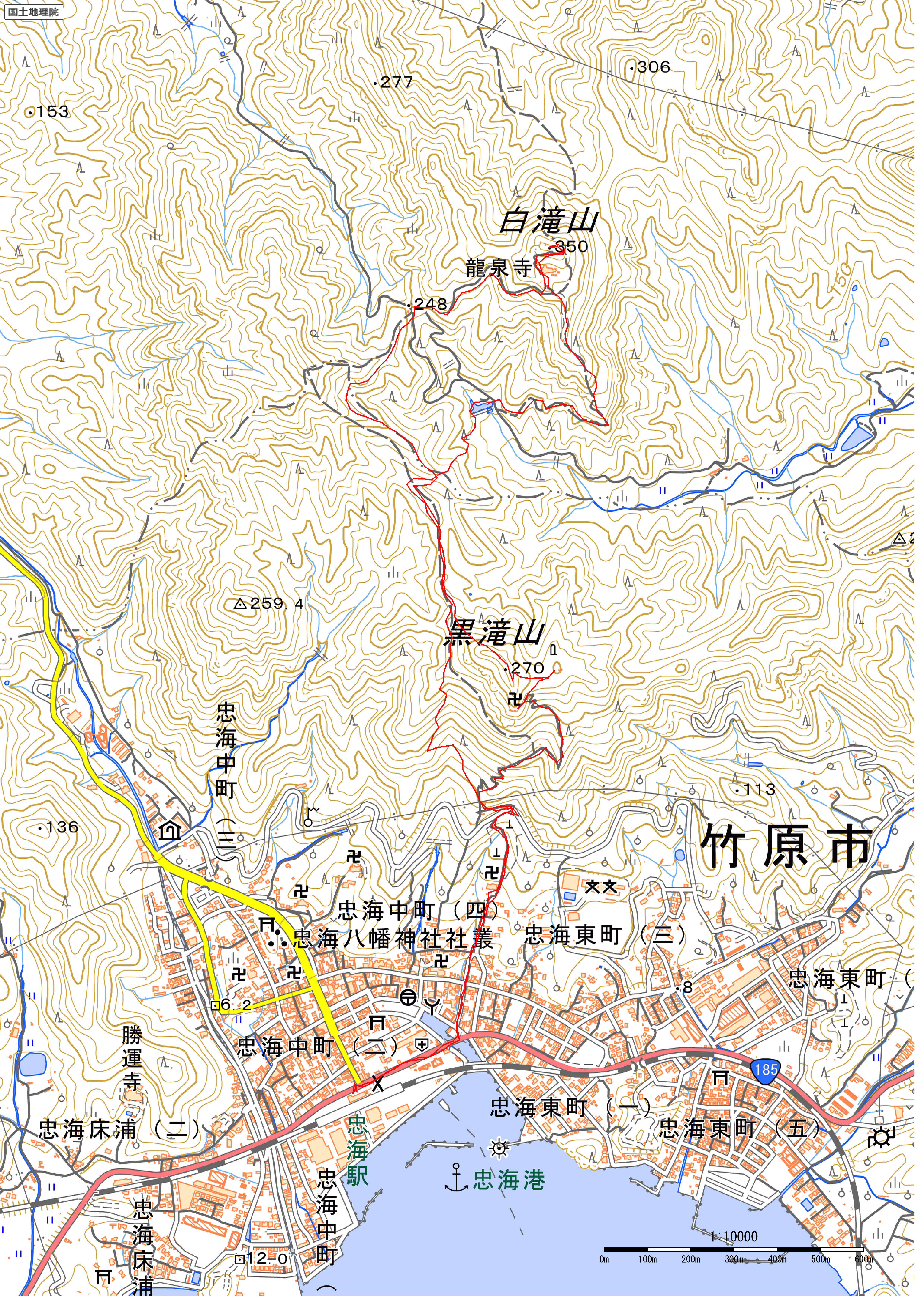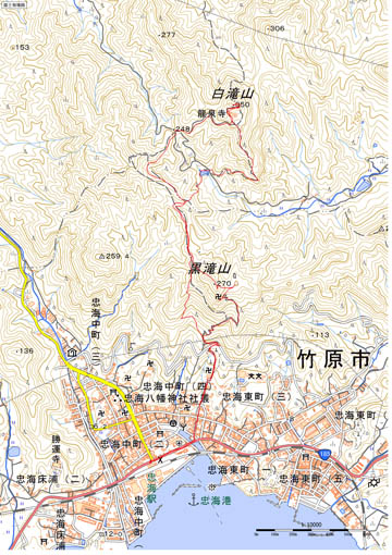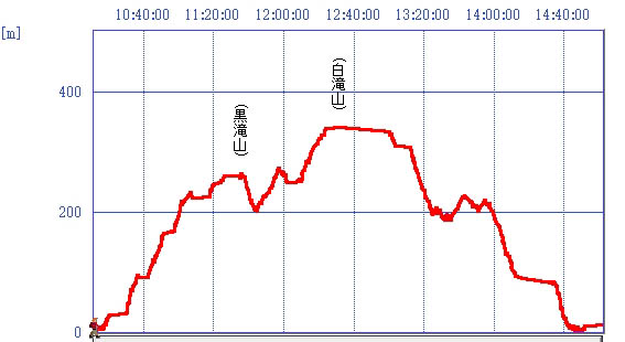 忠海駅 10:10 → 10:30 地蔵院 → 10:40 さくら堂 → 11:30 黒滝山 → 12:30 白滝山(昼食) 13:00 → 14:15 さくら堂 14:30 → 14:50 忠海駅 (JR 15:18 乗車)