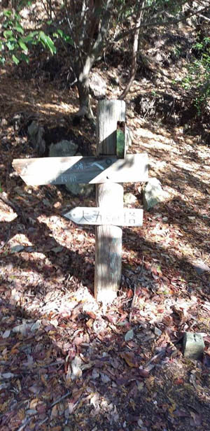 山道に入ると、耕作地跡と思われる石垣少し続いた。