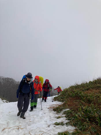 山頂近くでは、雪があり、キックステップ、フラットフィッチングの練習になった。