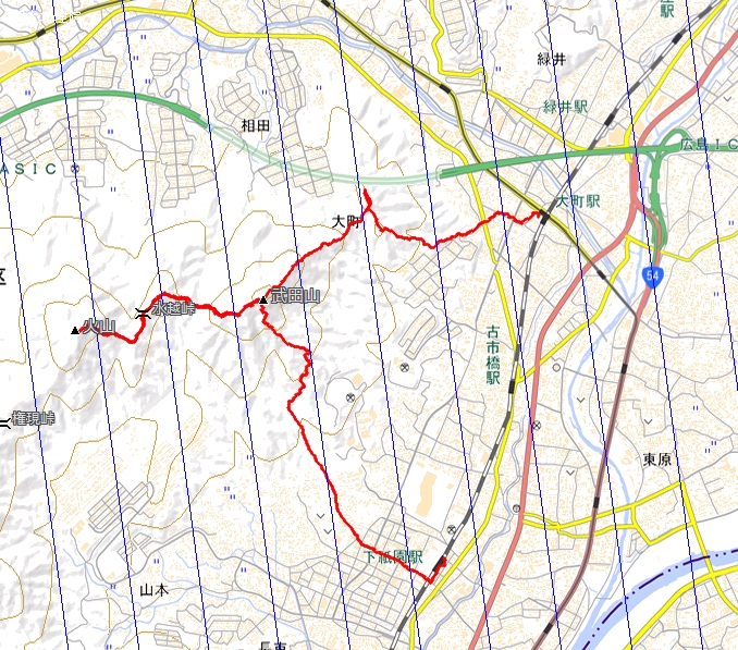 JR大町駅 8:35〜 登山口8:50〜 カガラ山9:30〜 武田山10:40〜 火山12:07