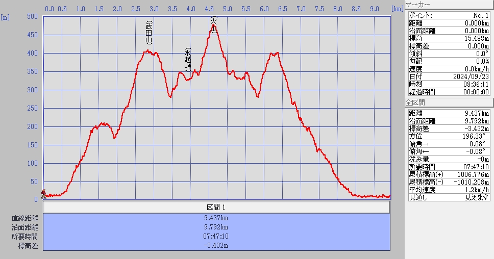 歩いたコース距離と標高