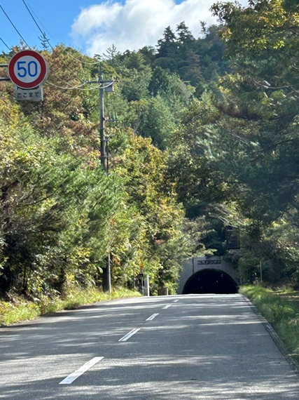 青葉に覆われた街道 秋晴れ気持ちよく歩くことができた