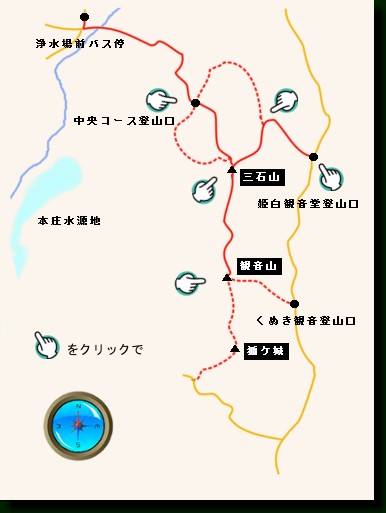 JR矢野駅前集合8:40→タクシーで熊野町民グランド登山口9:05→三石山10:05→観音山10:40→苗代下条11:30
