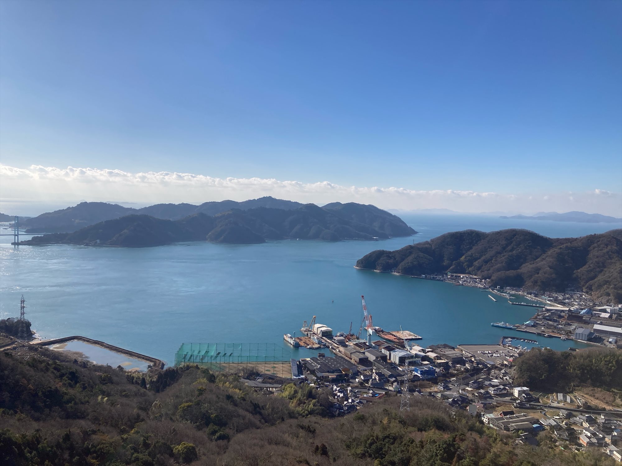 集合場所から舗装路を20分ほど歩き、登山口そばにある大歳神社で自己紹介や出発準備を行う。 山道に入ると、いきなり急登と岩歩きの連続。 大きな岩を登る時などは、足をかける場所などを教えあって少しずつ標高を上げていく。 大懸山には展望岩と呼ばれる眺めの良い岩場が2か所あるので、どちらでも休憩した。 快晴の空と遠くまで見える島々が、海の青に映えて美しい。 大懸山の山頂は眺望が無いので、少し下って眺めのいい物見山で昼食を取る。