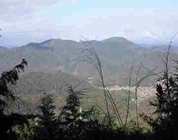 熊野町フジスーパーマーケット前からタクシーで阿戸山崎橋バス停の前から林道進みました 民家が数軒田舎路 タクシー運転手 私はこの道はじめてです まだ先に行くんですか 少し不安そうな声でした。 そこは私達が励ましして頂上の駐車場に着 徒歩5分で原山の三角点に行った その後は縦走路を歩いて見晴台、瀬戸内海の展望がガス覆われて観ることができなかった。