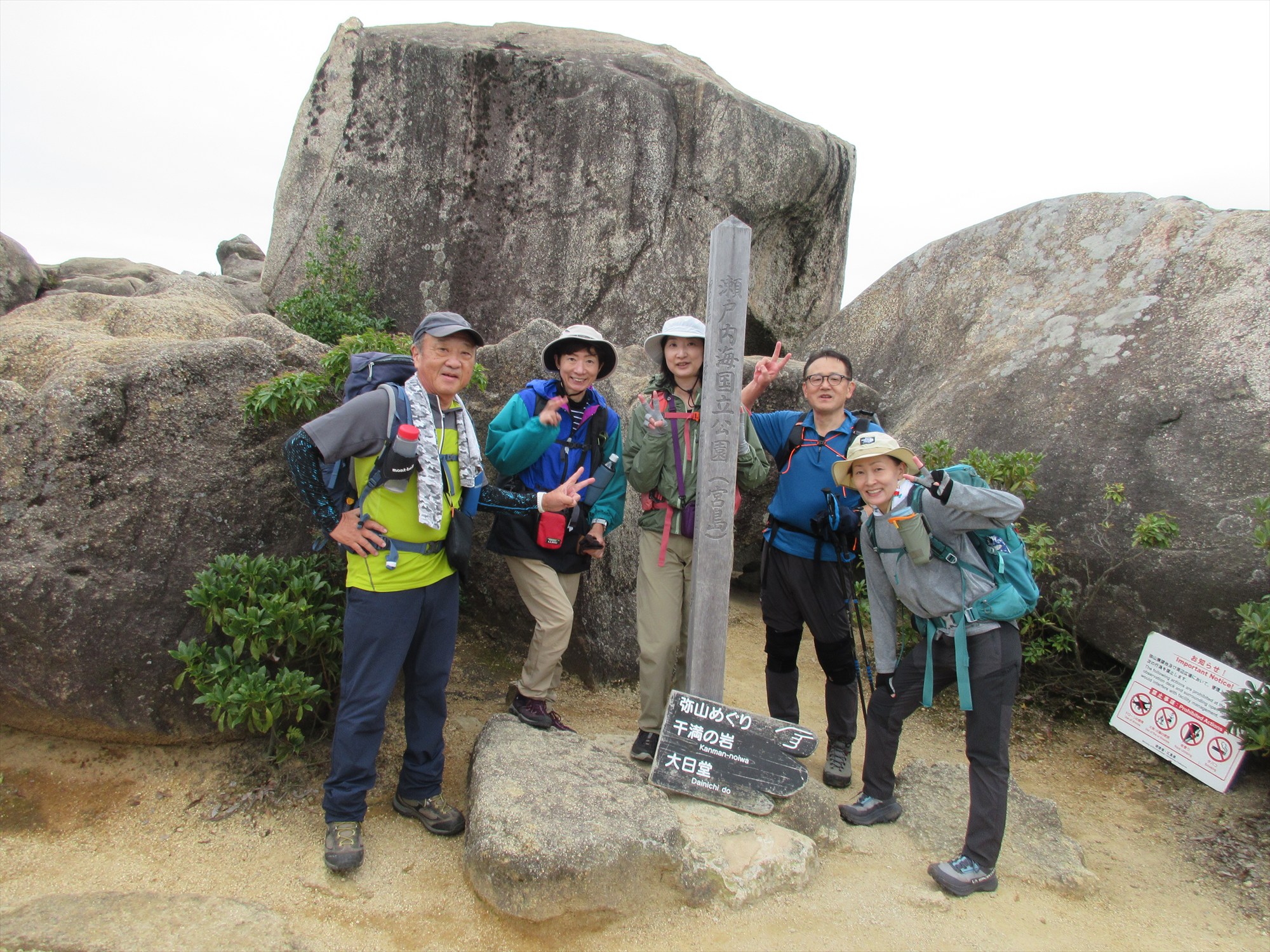 その後は相変わらず分岐を間違えそうになるCLを他メンバーが引き止めながら、岩屋大師の洞窟観光したりしてのんびり下山し、 雨がポツポツ来始めた13:40頃には無事下山して国民宿舎宮島杜の家のお風呂でゆっくりしました。 心残りだったのは国民宿舎に泡の飲み物の自販機がなく、風呂上がりの一杯ができなかった事くらいです。