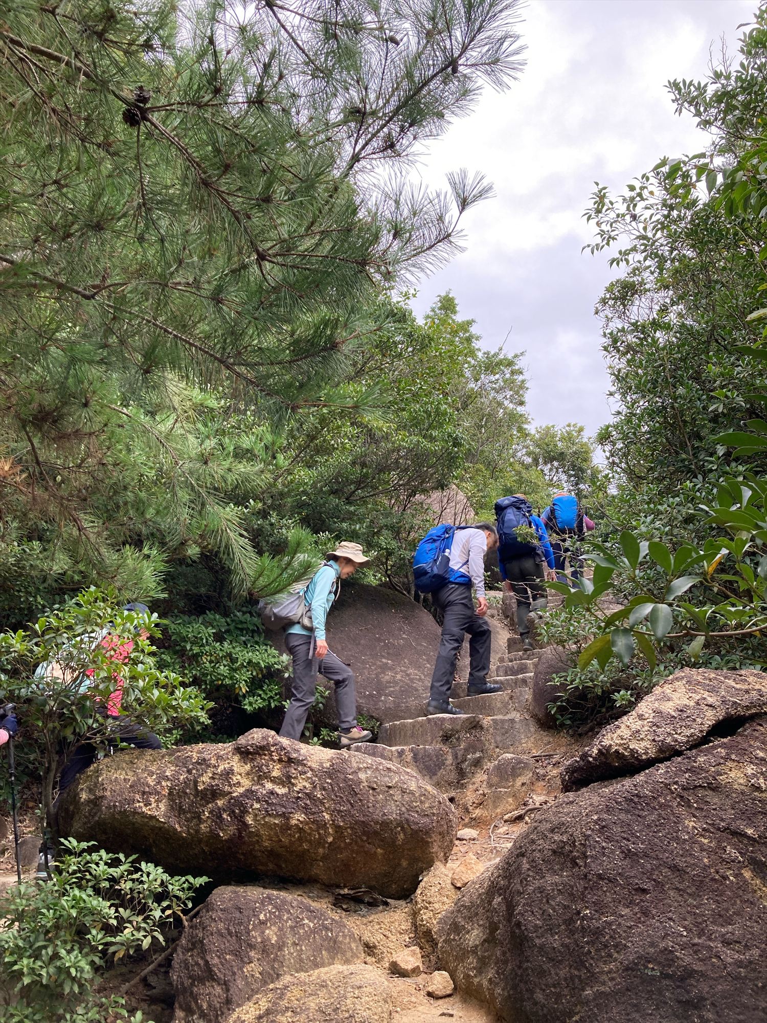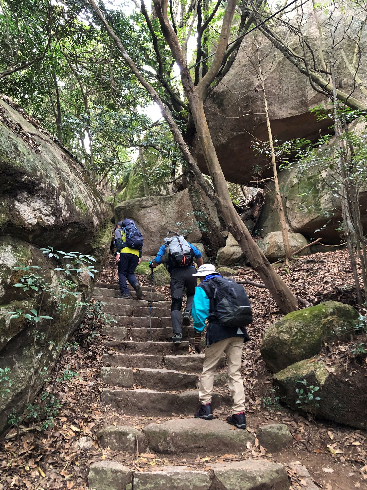 山頂近くの大きな岩の下で