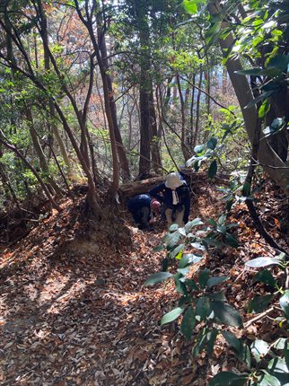 ここから急な下り坂