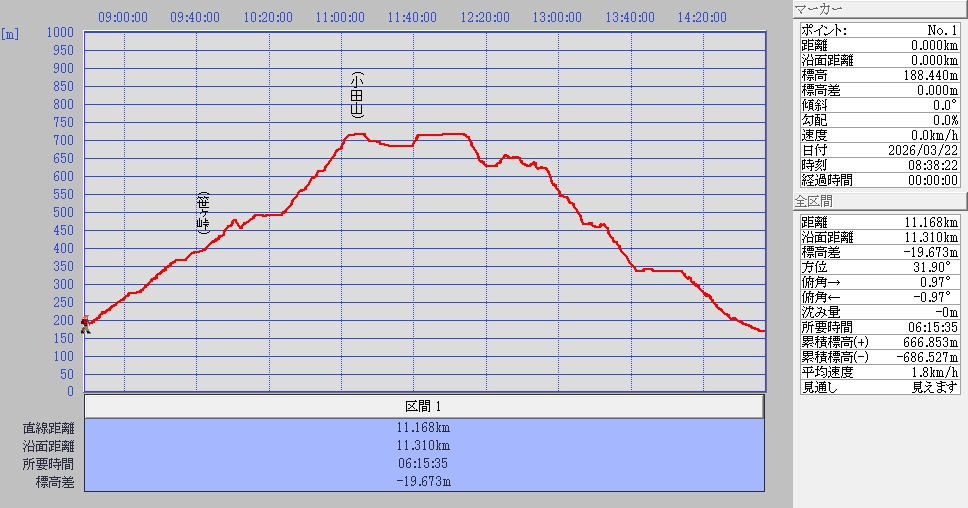 JR瀬野駅バス停8:20⇒8:40海上側バス停〜国草登山口〜9:40笹が峠〜11:10小田山山頂(昼食・岩めぐり)12:15〜
