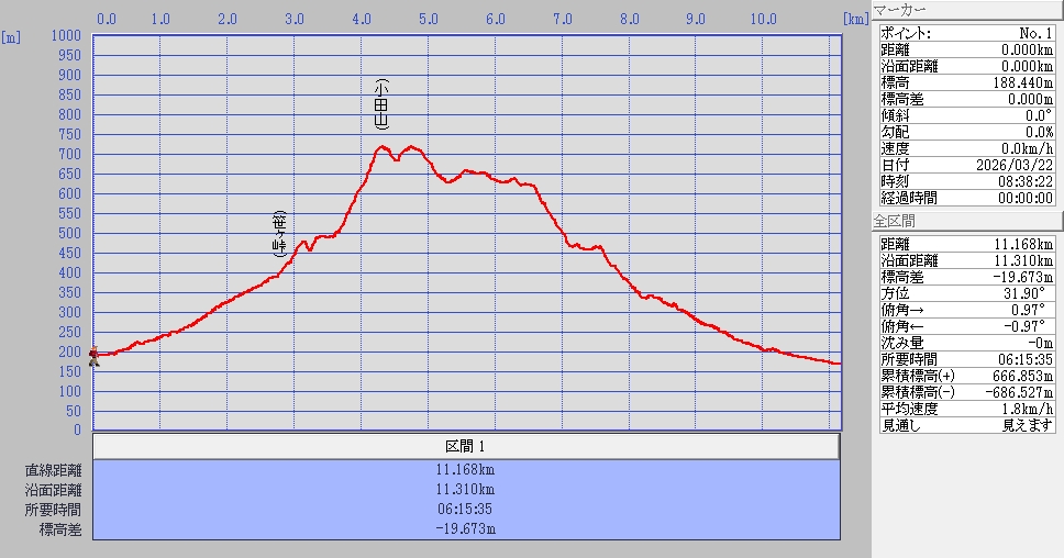 バス停から登山口、下山口からバス停までどちらも1時間足らず。