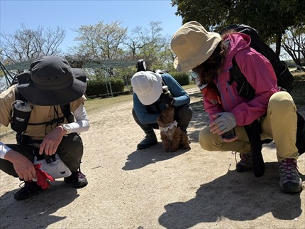 散歩中のワンちゃんと