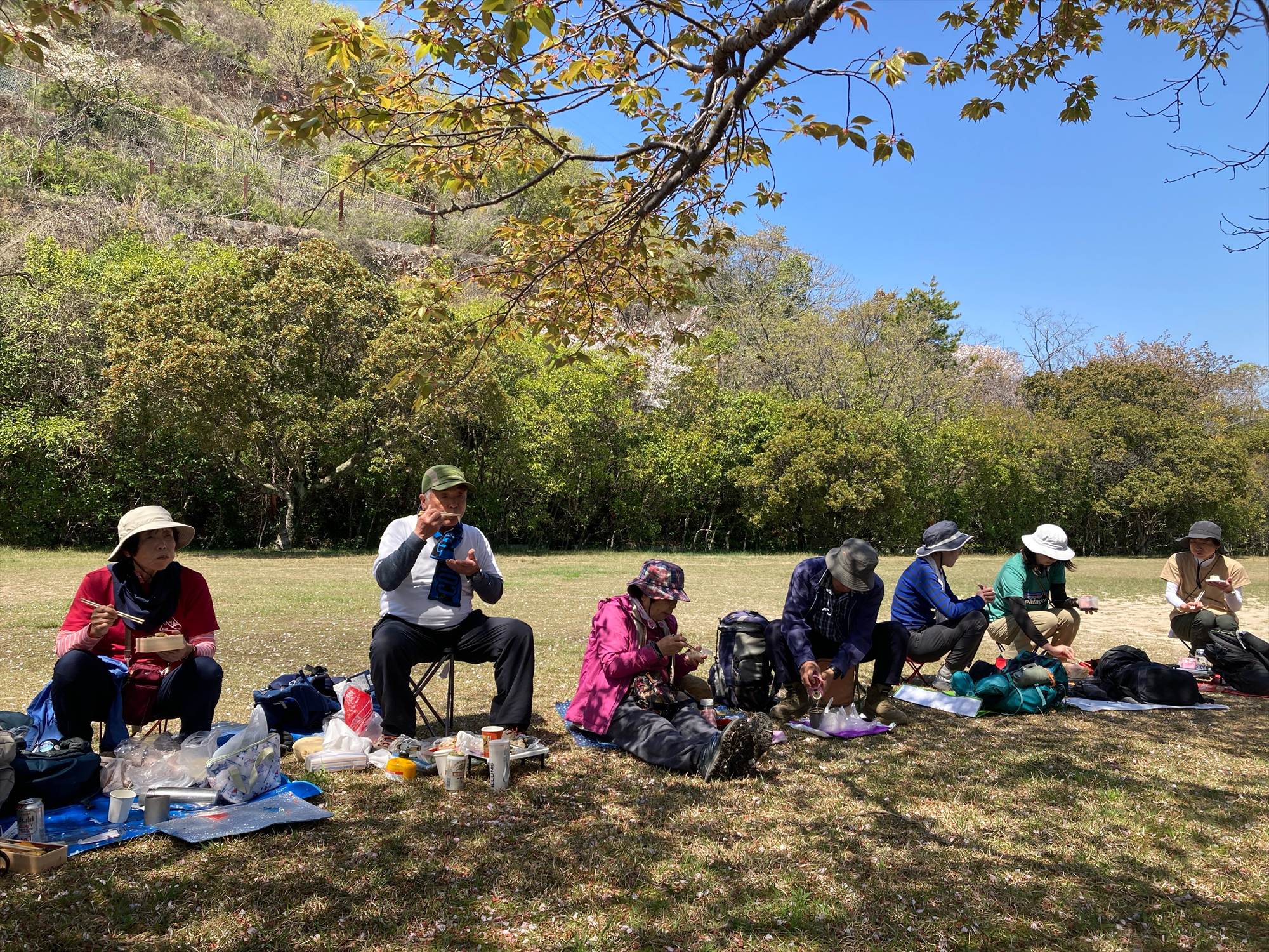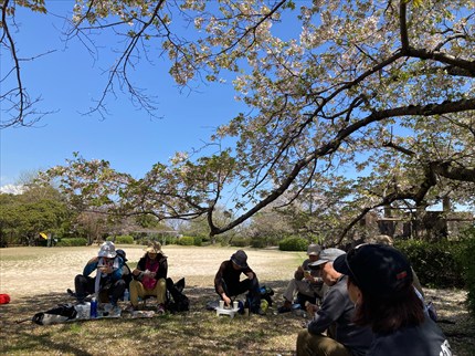 桜の下で昼食