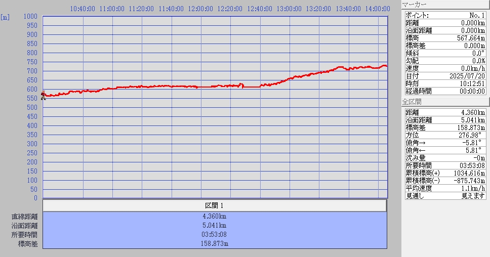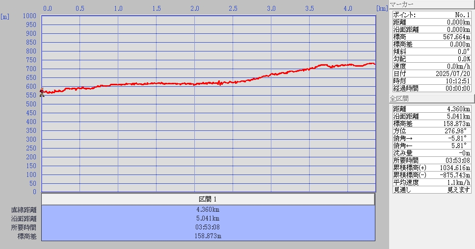 歩いたコース距離と標高