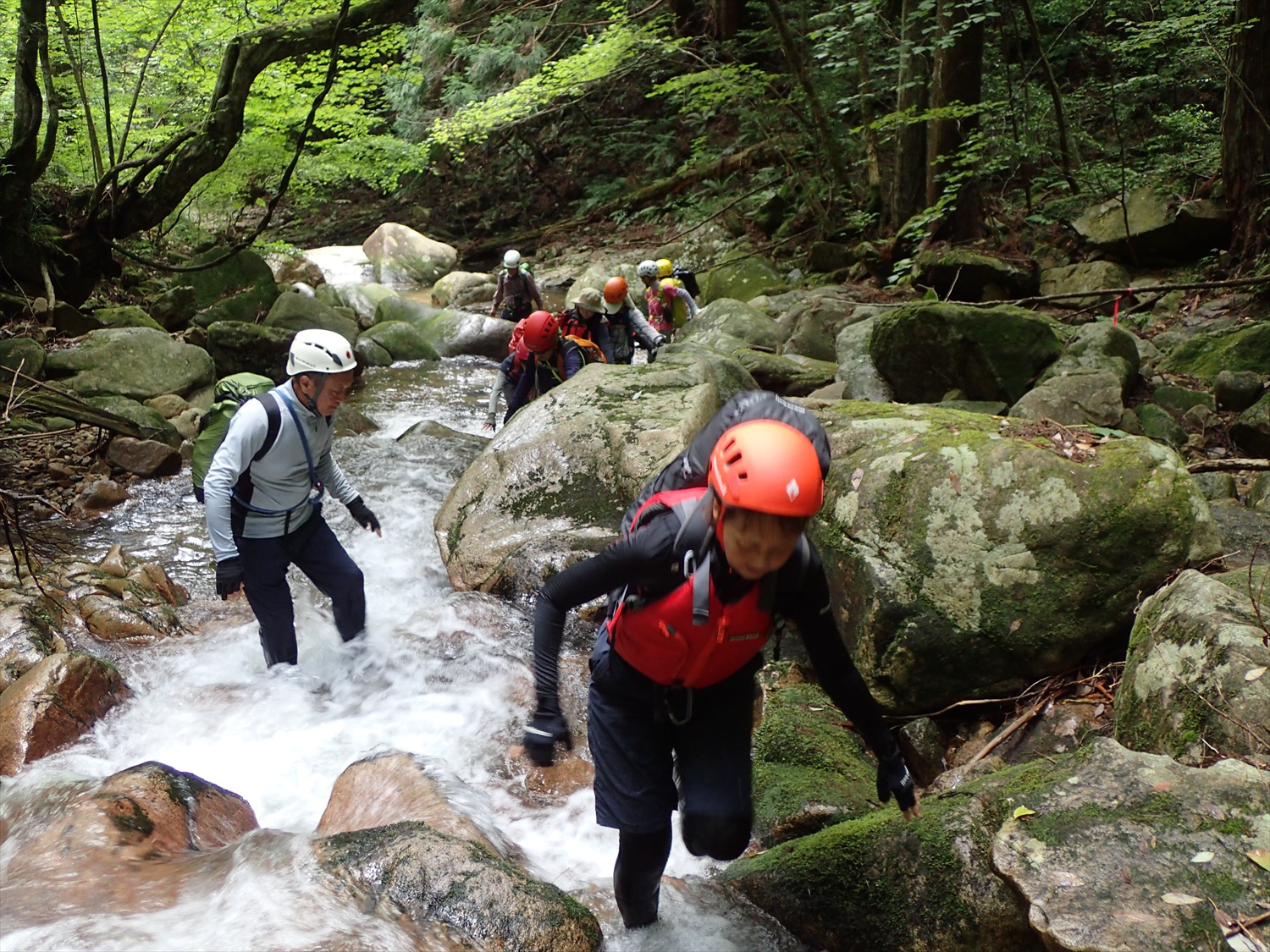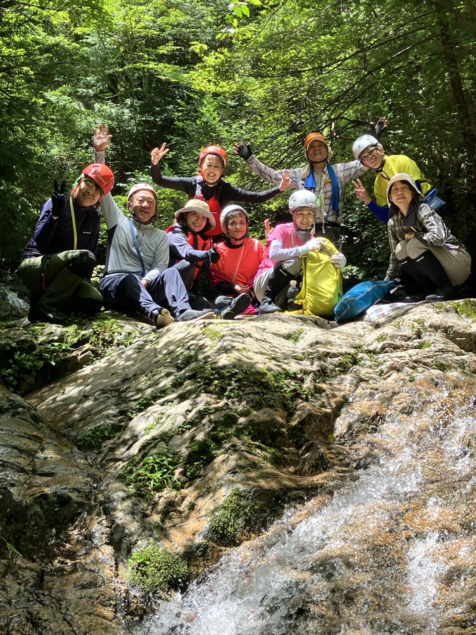 安佐岳友クラブからも大藤夫妻らゲスト(というか、沢歩きの指導をお願いしました)をお迎えして盛大に実施しました。