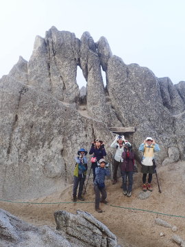 12:00出発し表銀座コースを進む。切通岩では梯子状の木製階段や鎖場がありこのコースの中で一番緊張した。