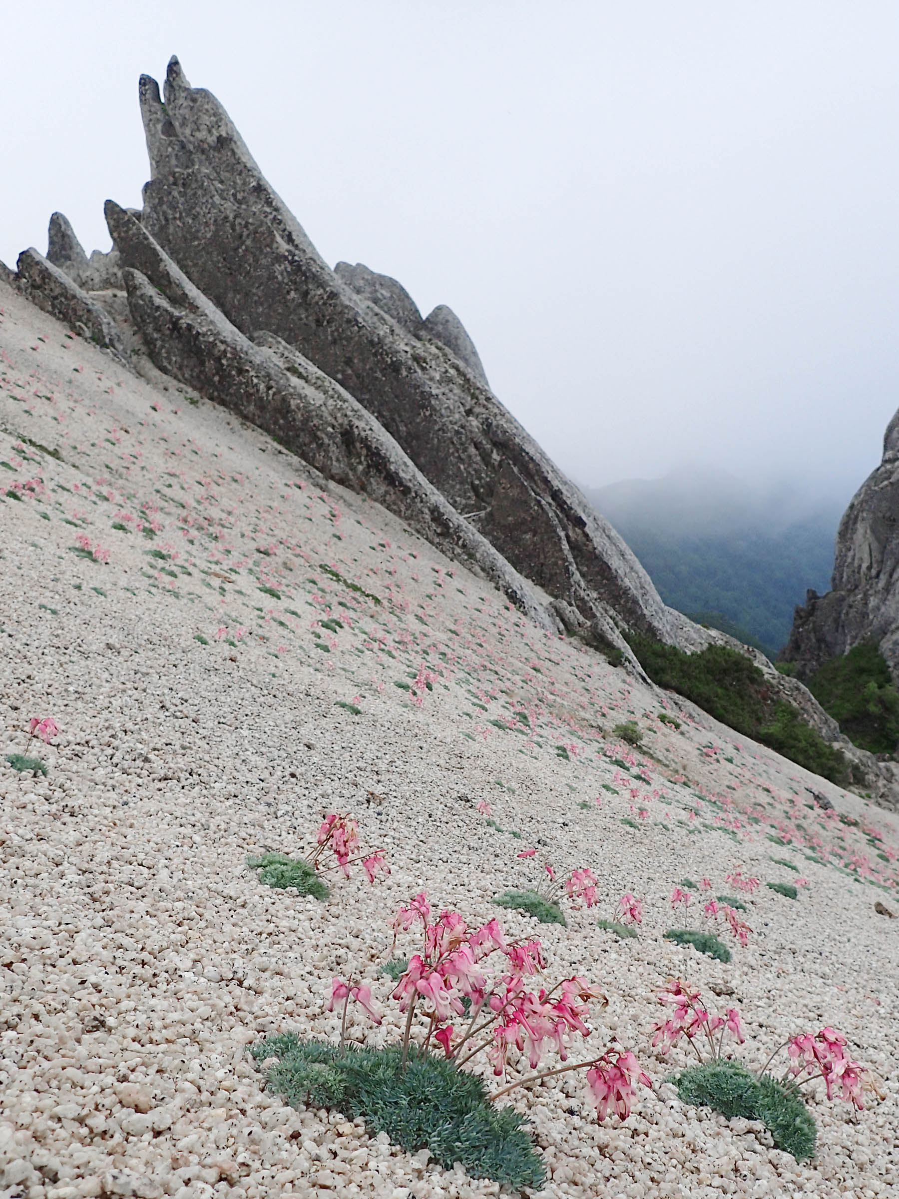 徐々に気温も上昇し胸突八丁はとても苦しかっが、高山植物に癒されつつなんとか進めた。