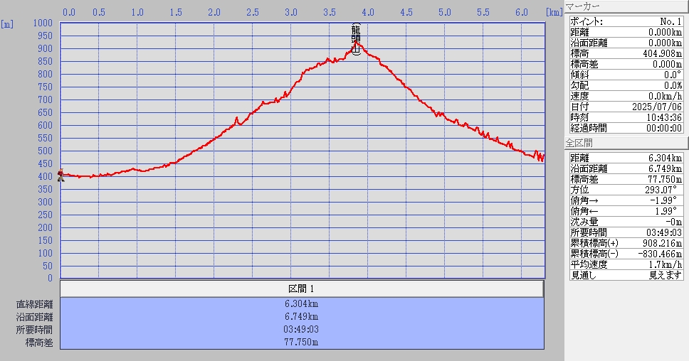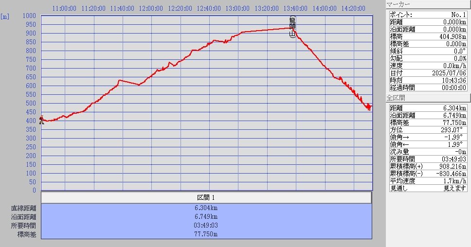 11:35駒ケ滝〜12:50中龍頭〜13:00龍頭山山頂(昼食)13:40〜14:30掛札バス停