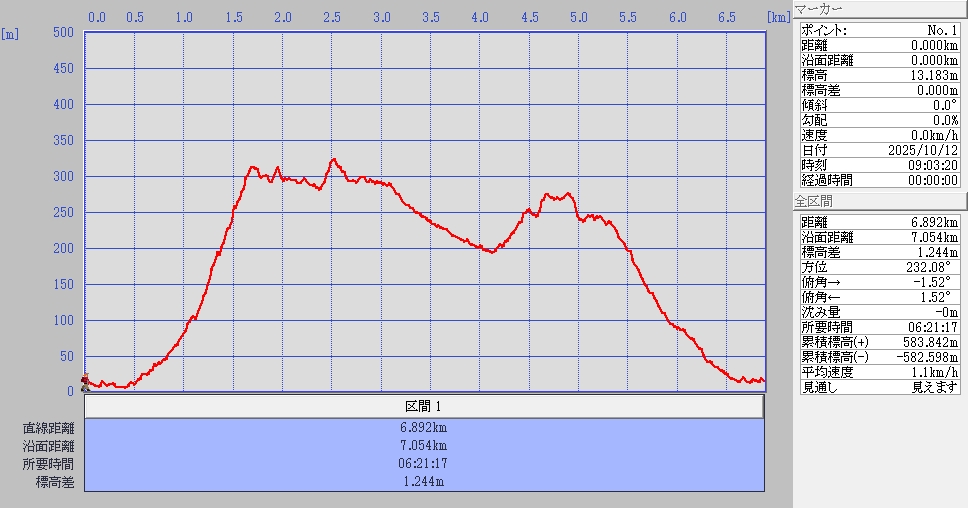 歩いたコース距離と標高