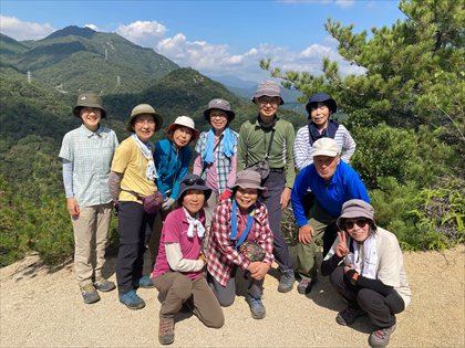 傘山を背に集合写真