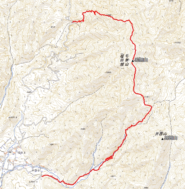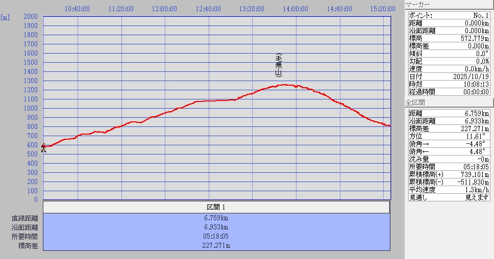 13:40福田頭頂上〜15:20福田頭下山口⇒ 15:40福田頭下山口駐車場⇒