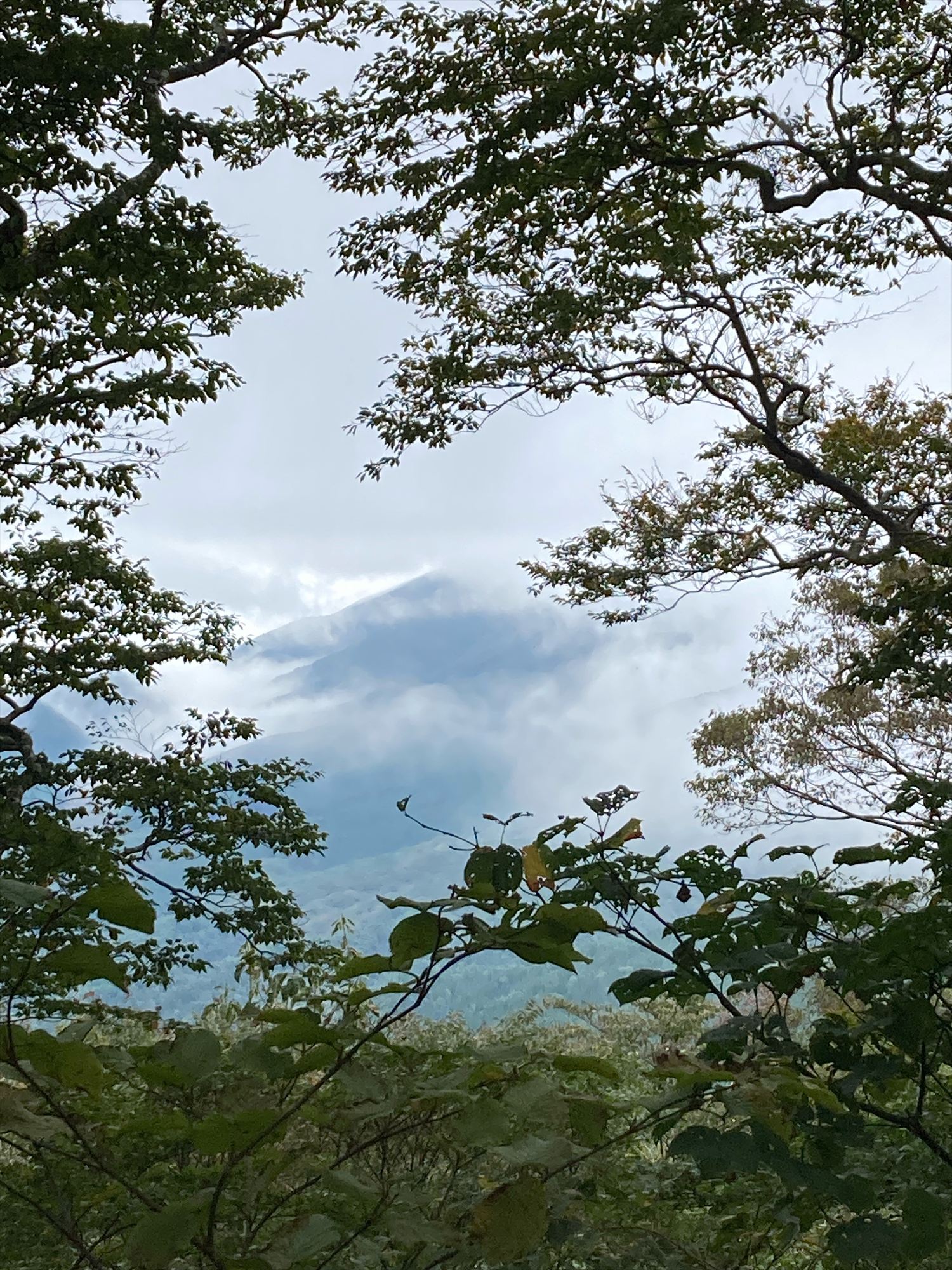 登る前に見上げた山頂付近は雲に覆われていましたが、実際に歩いてみると、あたり一面が白い霧に包まれ、とても幻想的な雰囲気でした。 残念ながら山頂からの眺めは雲の中で見えませんでしたが、自然の静けさに包まれ、心が洗われるような時間を過ごせました。