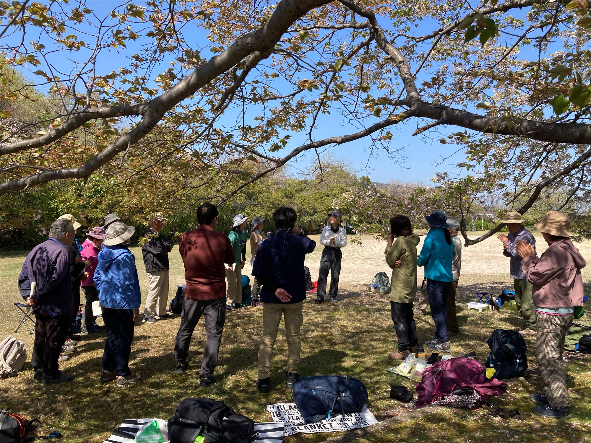 桜の下で昼食